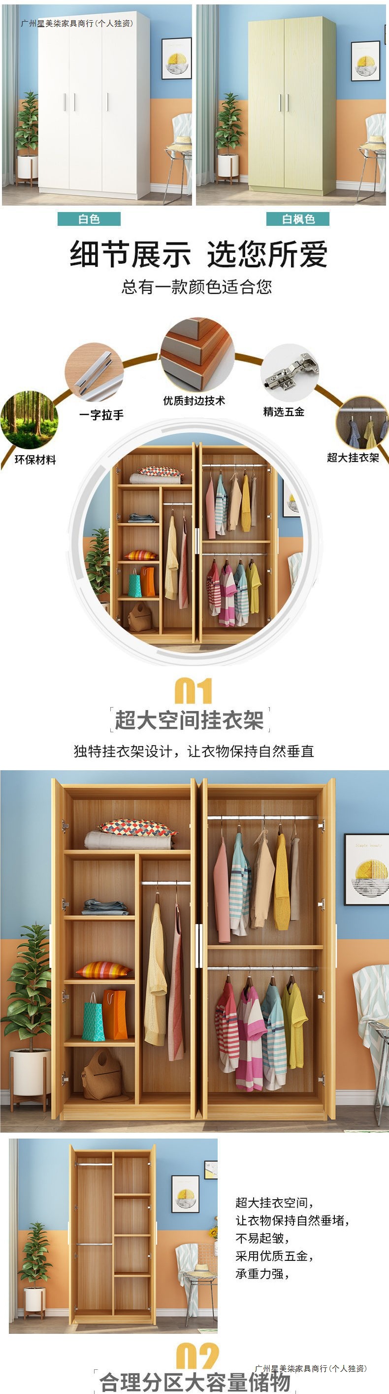 옷장 단단한 나무 간단한 가정용 침실 임대 간단한 패널 조립 보관 캐비닛 보관 캐비닛 대형 옷장스토어 가기