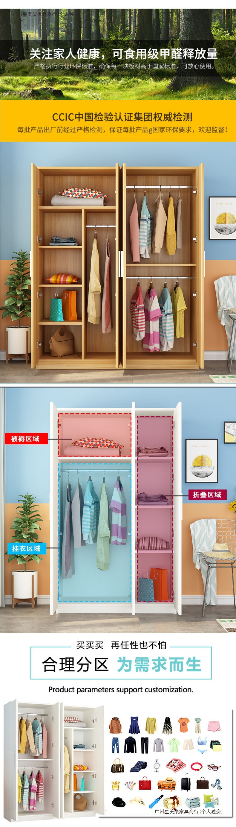 옷장 단단한 나무 간단한 가정용 침실 임대 간단한 패널 조립 보관 캐비닛 보관 캐비닛 대형 옷장