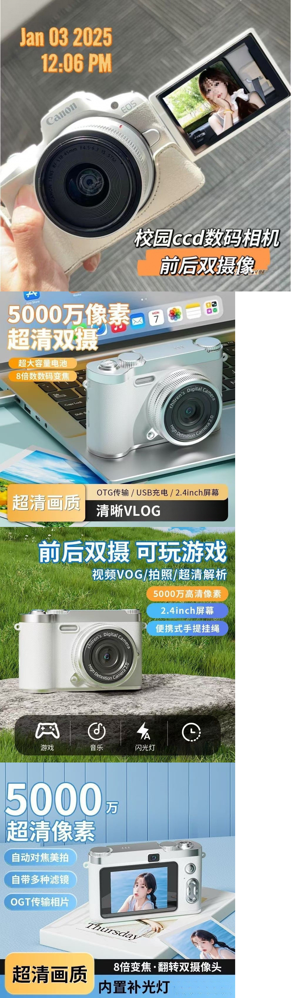 1억 픽셀 듀얼 카메라 비디오 ccd 디지털 카메라 캠퍼스 학생 파티 귀여운 복고풍 카메라 소형 카드 카메라스토어 가기