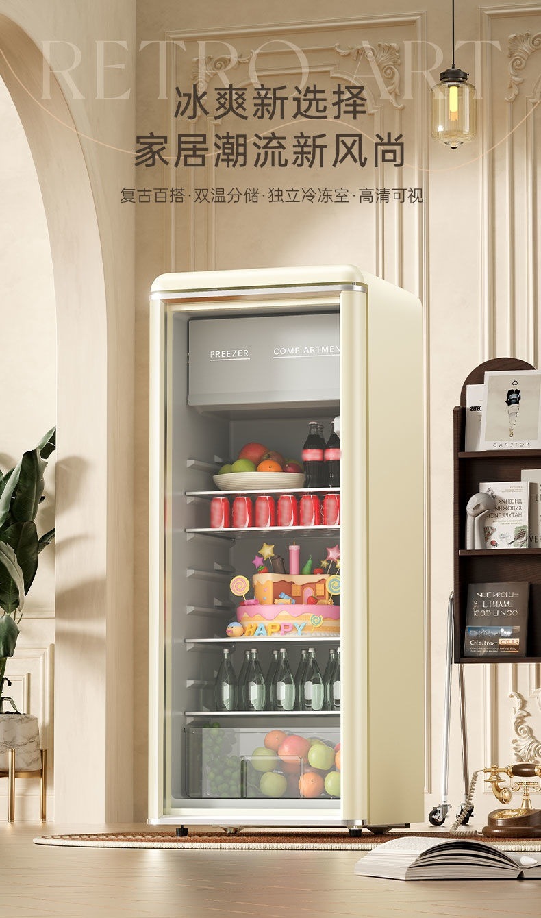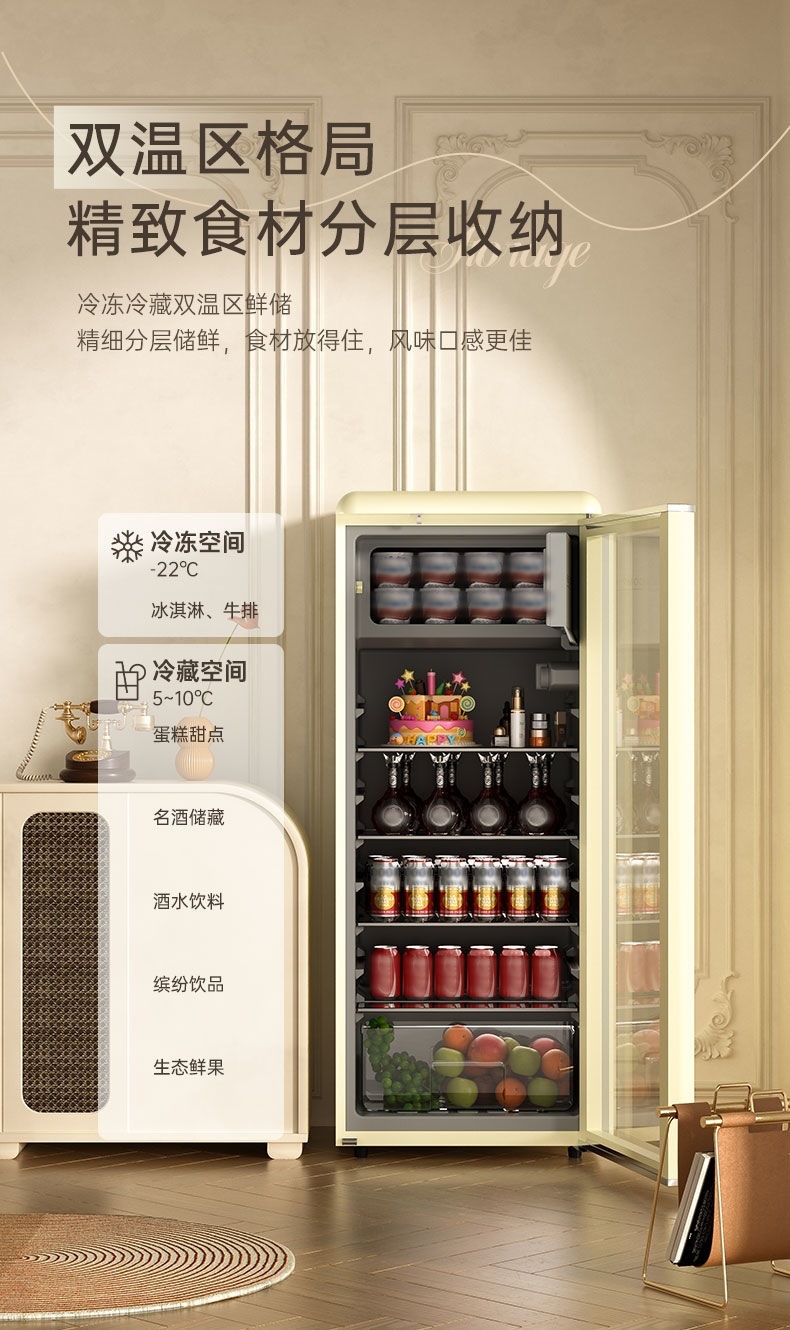 새로운 복고풍 아이스 바 직접 냉각 가정용 상업용 공냉식 냉동고 레드 와인 음료 냉동 냉장고 1급 에너지 절약