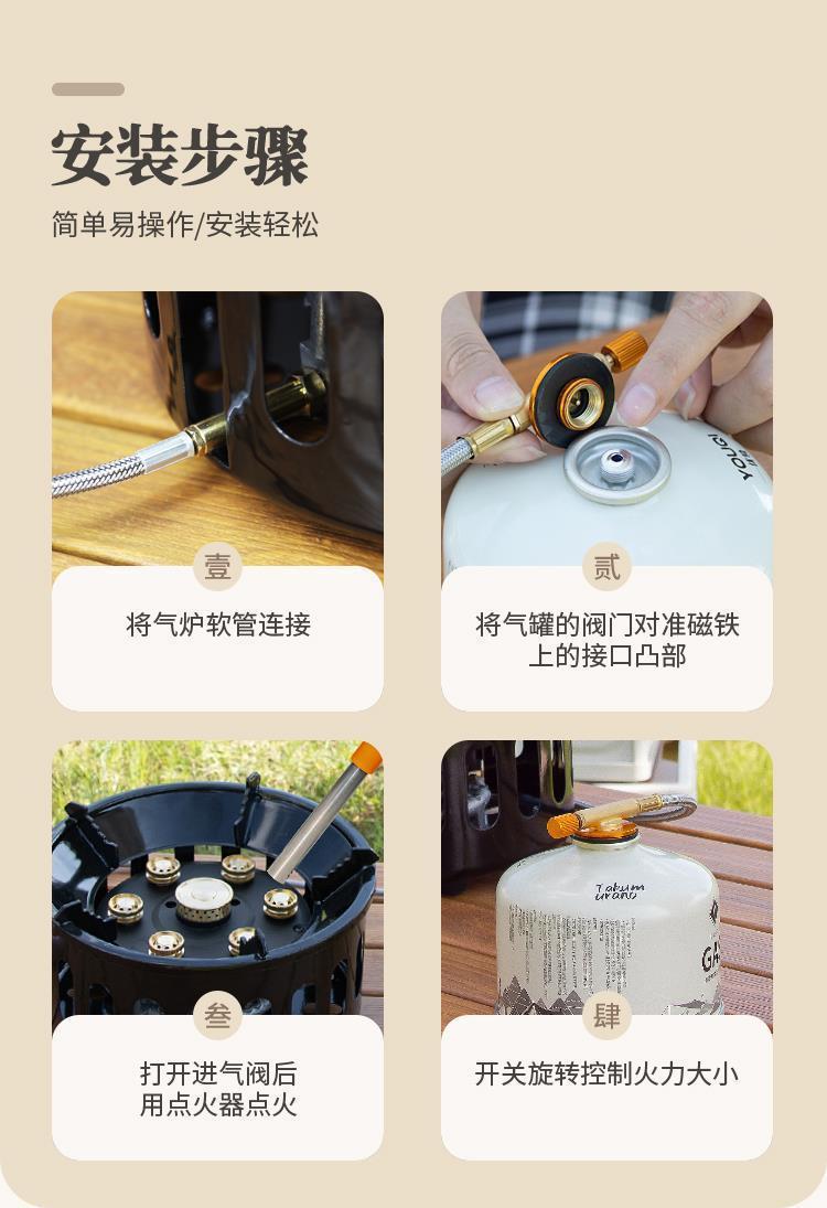 • 전자 점화 7성 스토브(액화 가스 헤드 어댑터 포함)