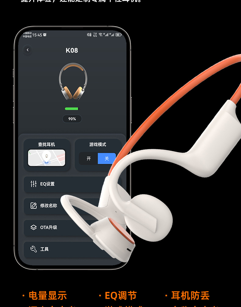장시간 사용에도 통증이 없는 음악 듣기, 달리기, 스포츠용 무선 헤드셋을 위한 크로스보더 K08 골전도 블루투스 헤드셋