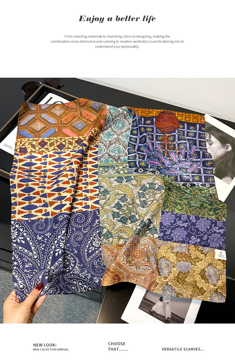 여성을위한 복고풍 유화 같은 멀버리 실크 작은 사각형 스카프 봄과 여름 새로운 패션 문학 다목적 가벼운 장식 스카프스토어 가기