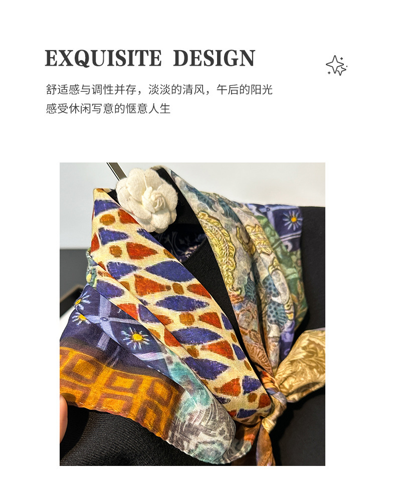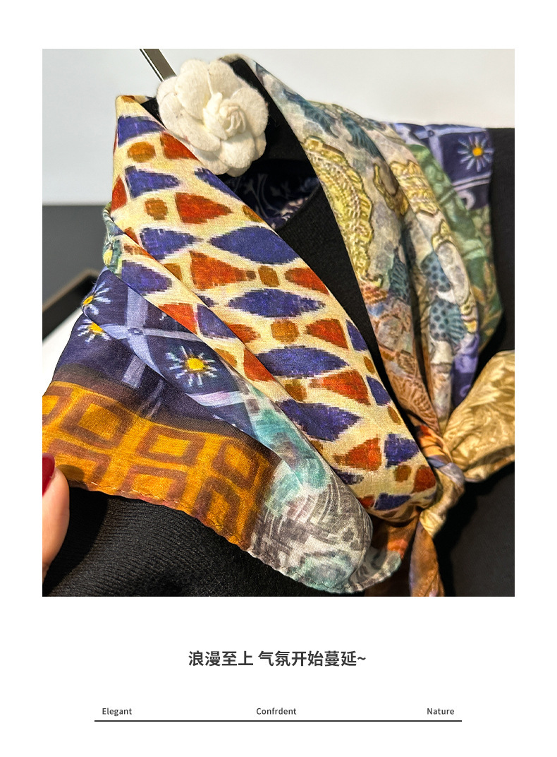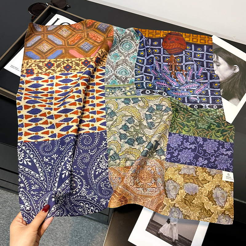 여성을위한 복고풍 유화 같은 멀버리 실크 작은 사각형 스카프 봄과 여름 새로운 패션 문학 다목적 가벼운 장식 스카프