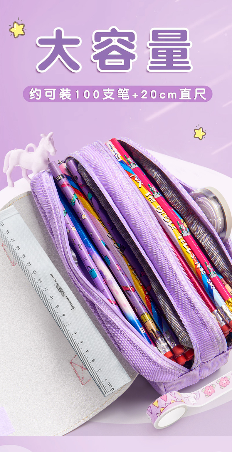 새로운 애니메이션 쿠로미 멜로디 연필 가방 문구 상자 대용량 3 층 초등학생 귀여운 연필 상자 낙하 방지스토어 가기