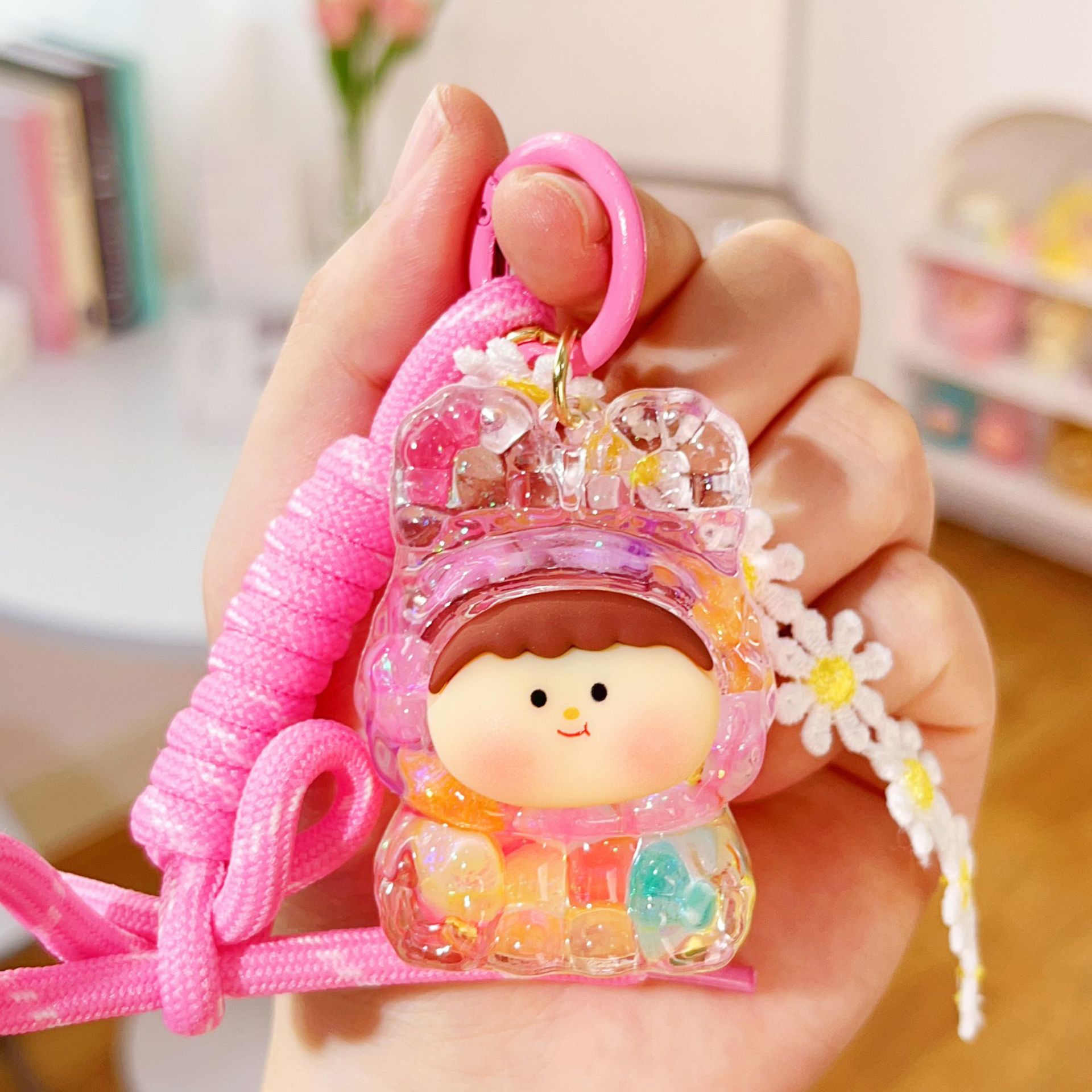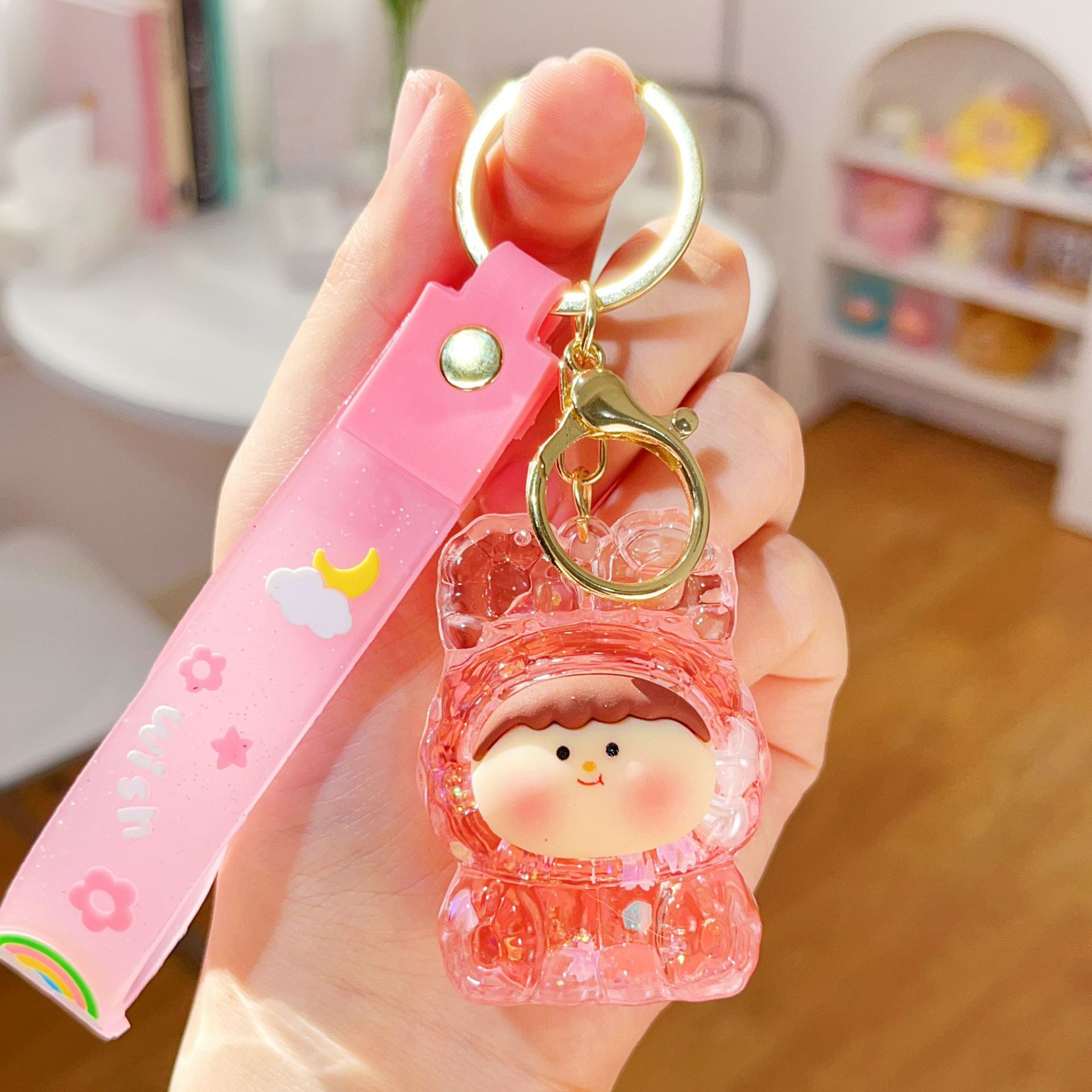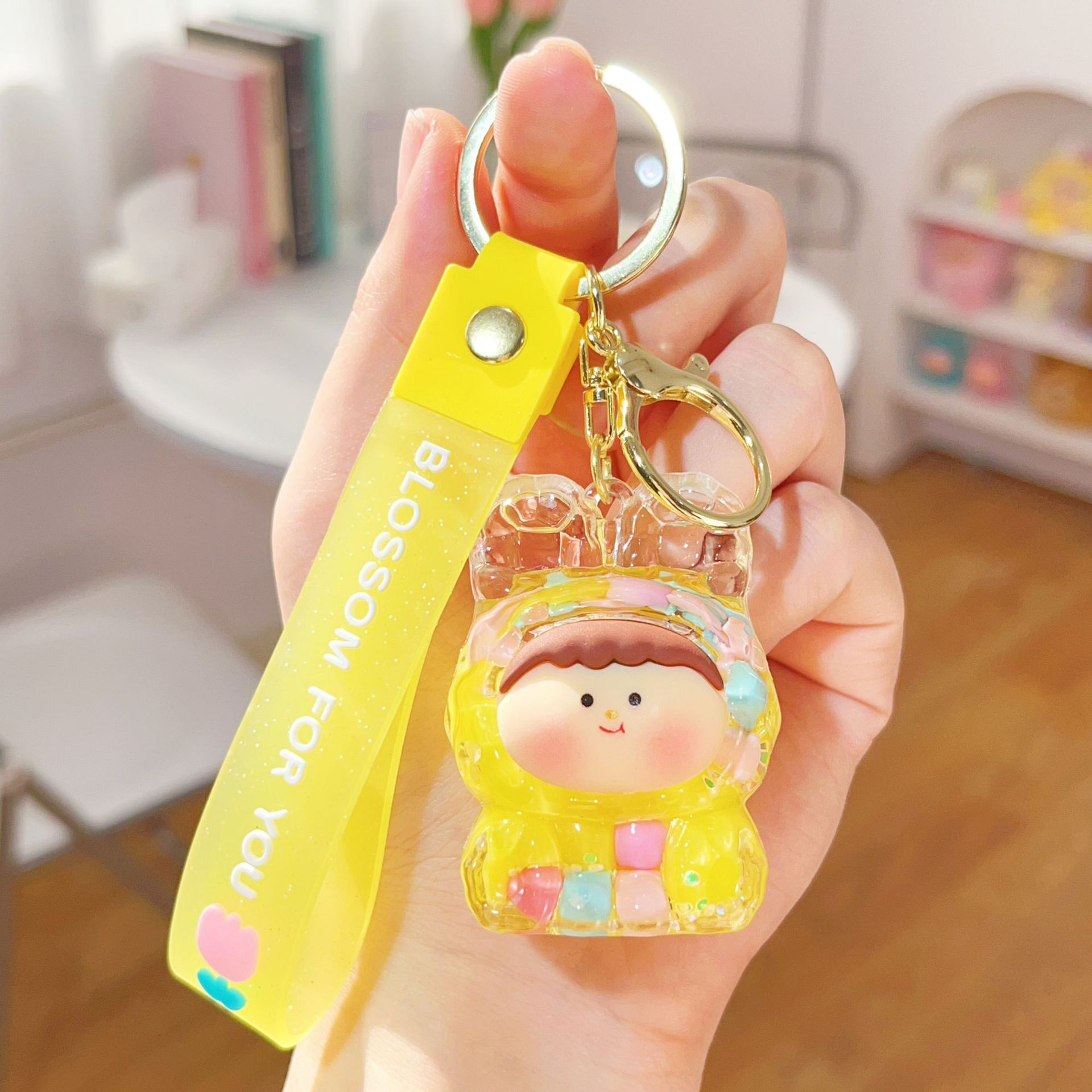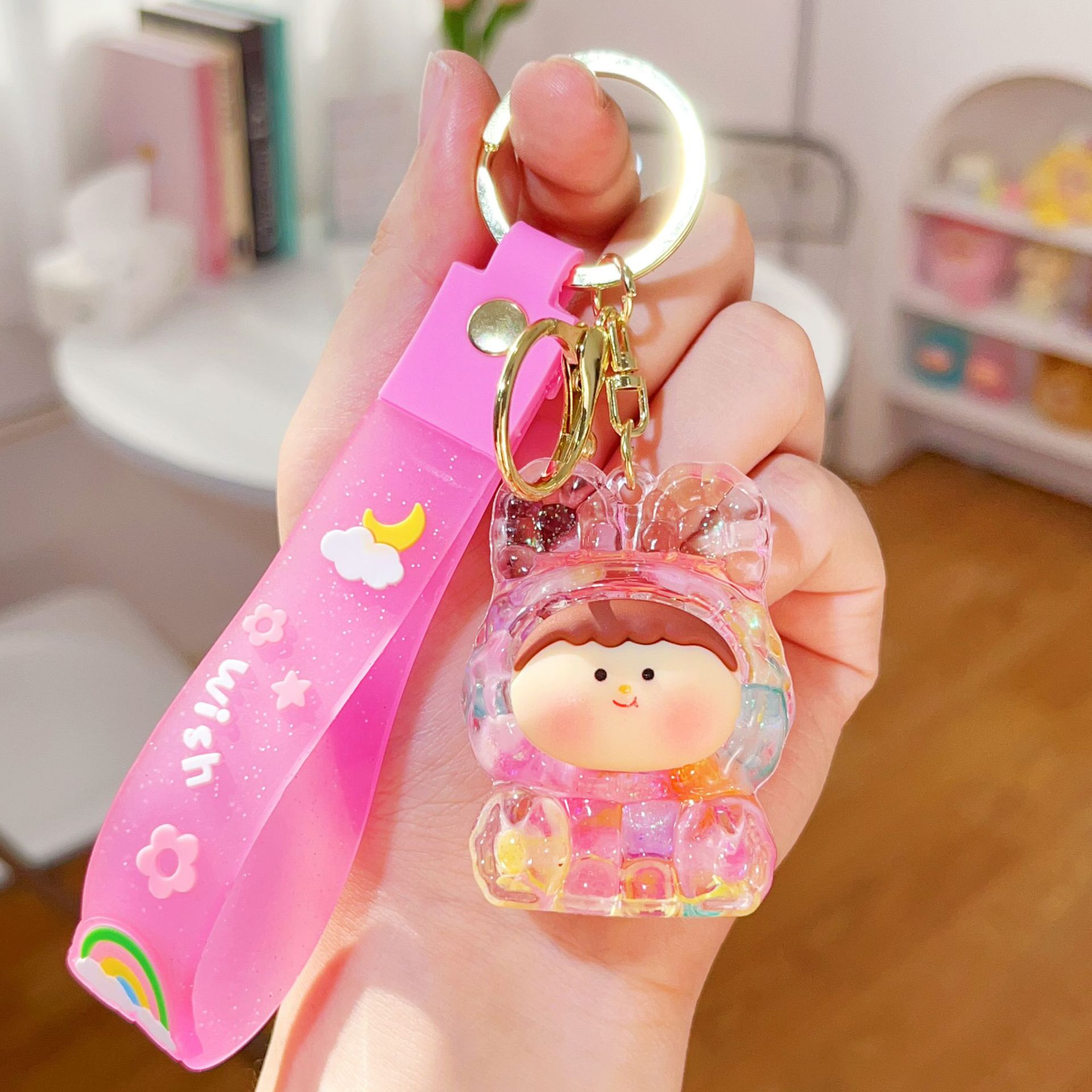 미니 릴리스 아크릴 플래시 유행 귀여운 액세서리 오일 액체 키 체인 펜던트 작은 선물 시리즈