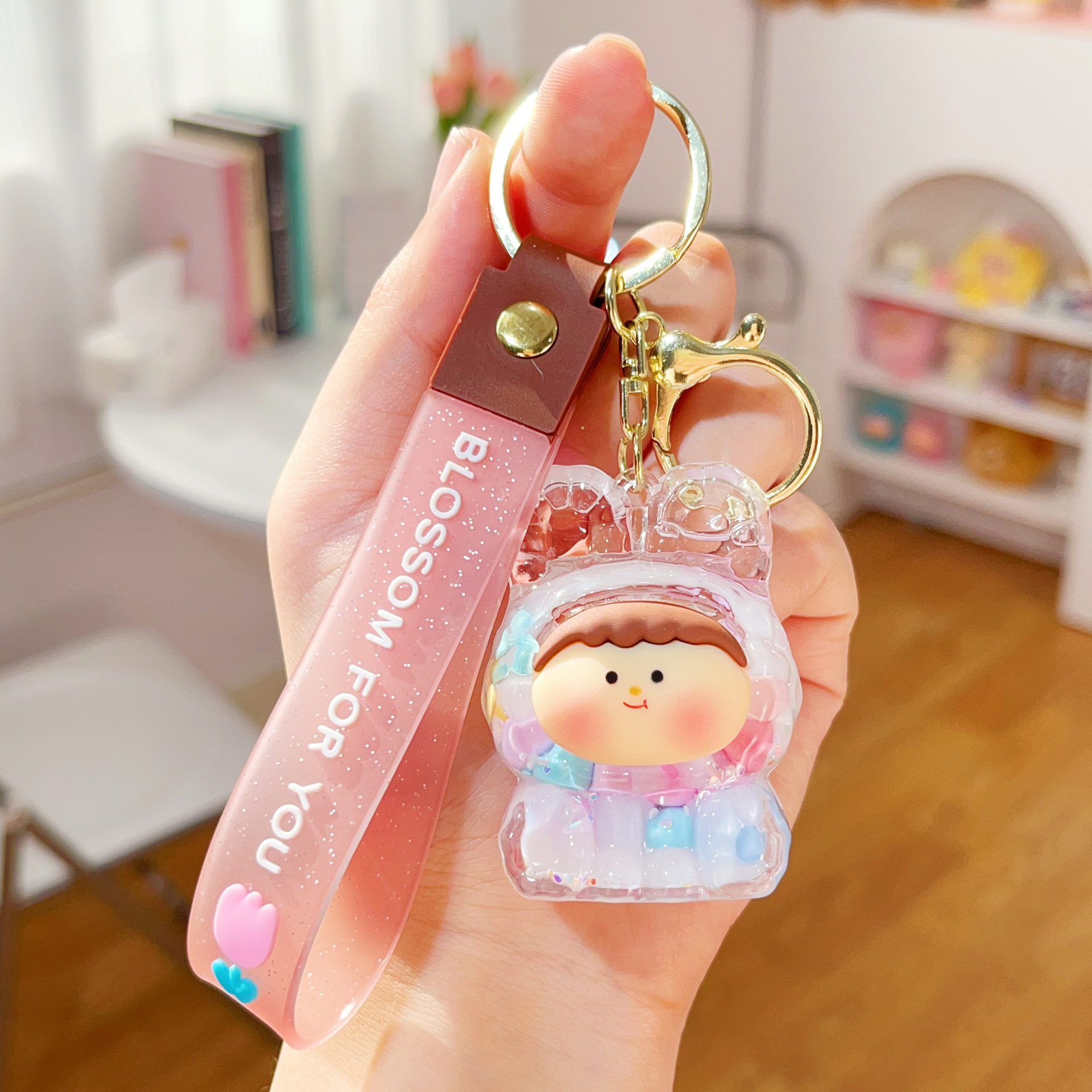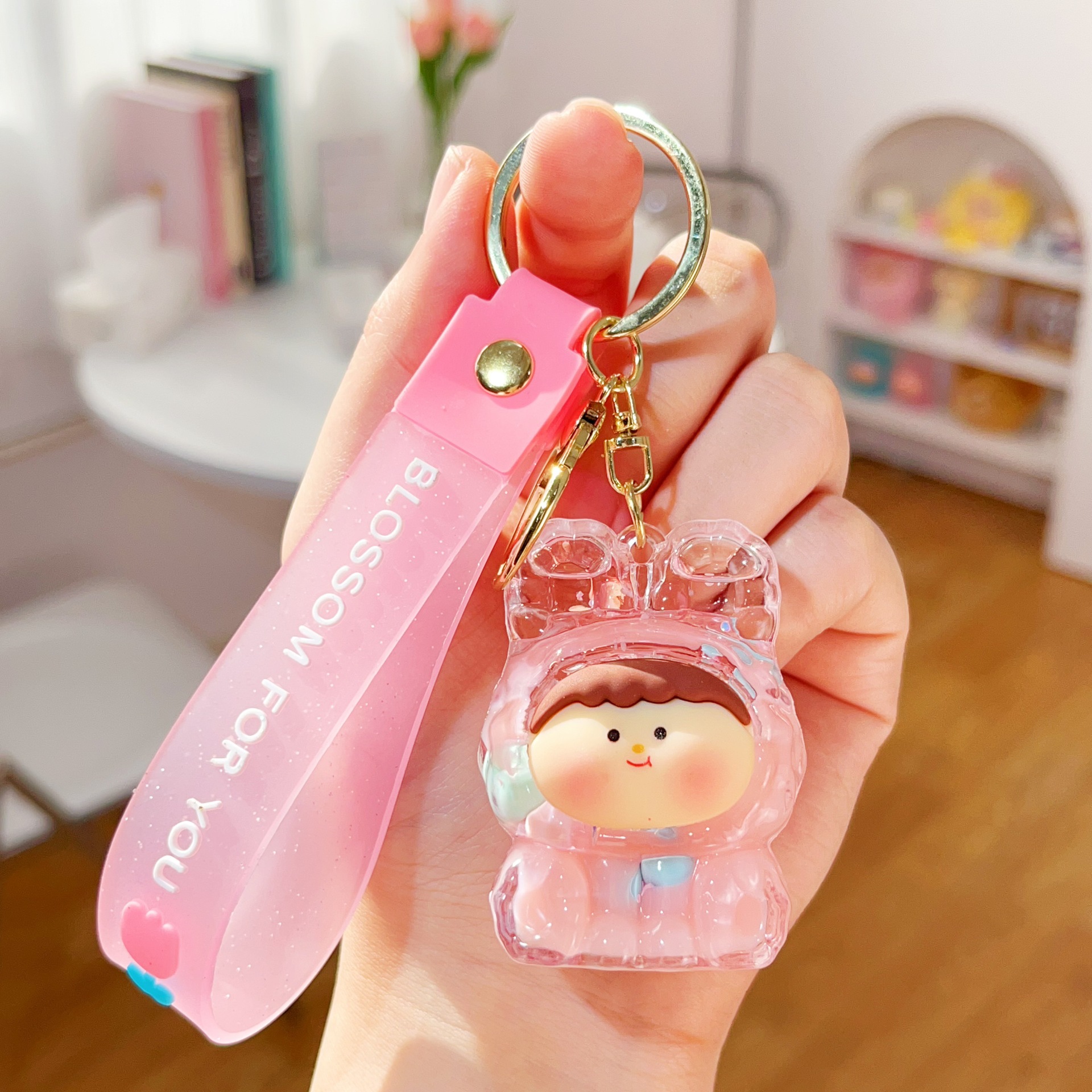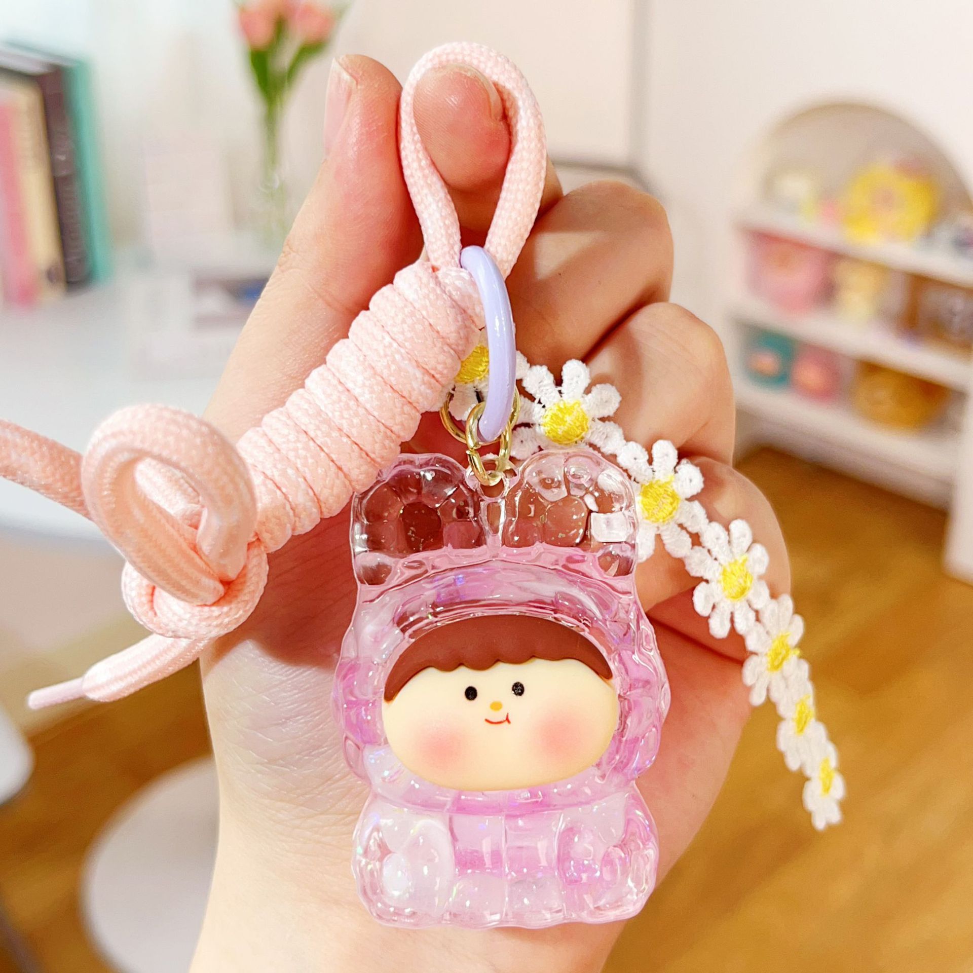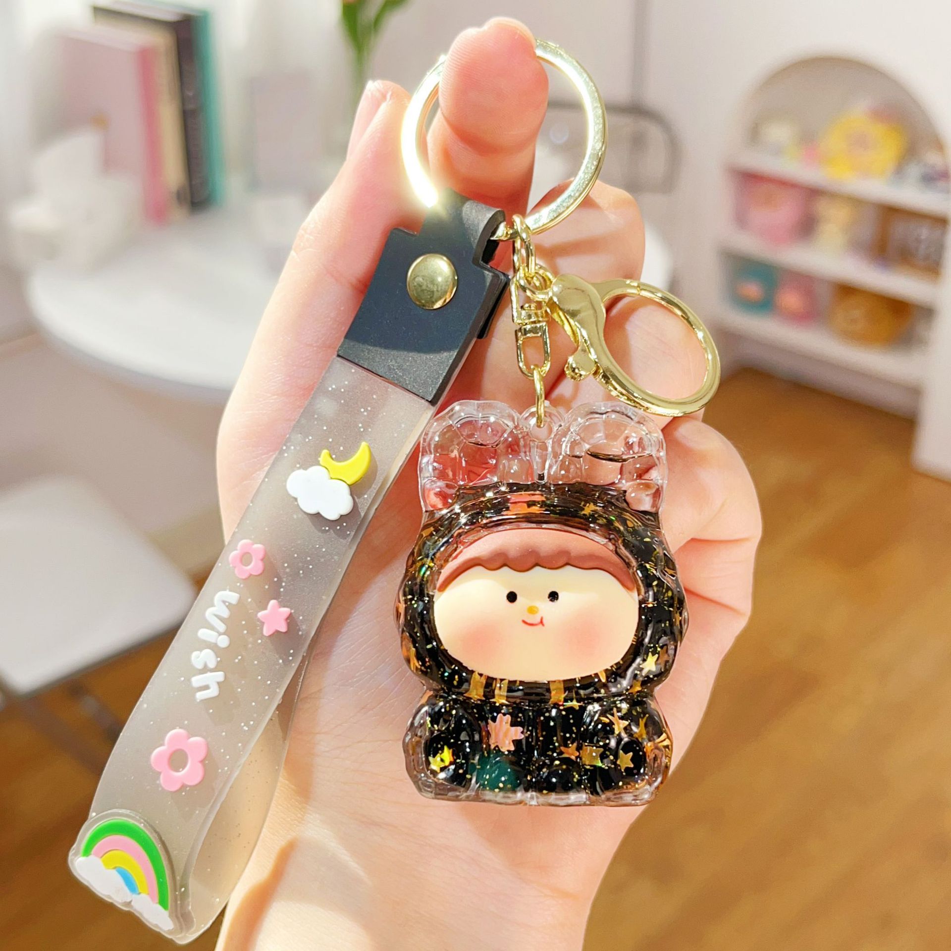 미니 릴리스 아크릴 플래시 유행 귀여운 액세서리 오일 액체 키 체인 펜던트 작은 선물 시리즈