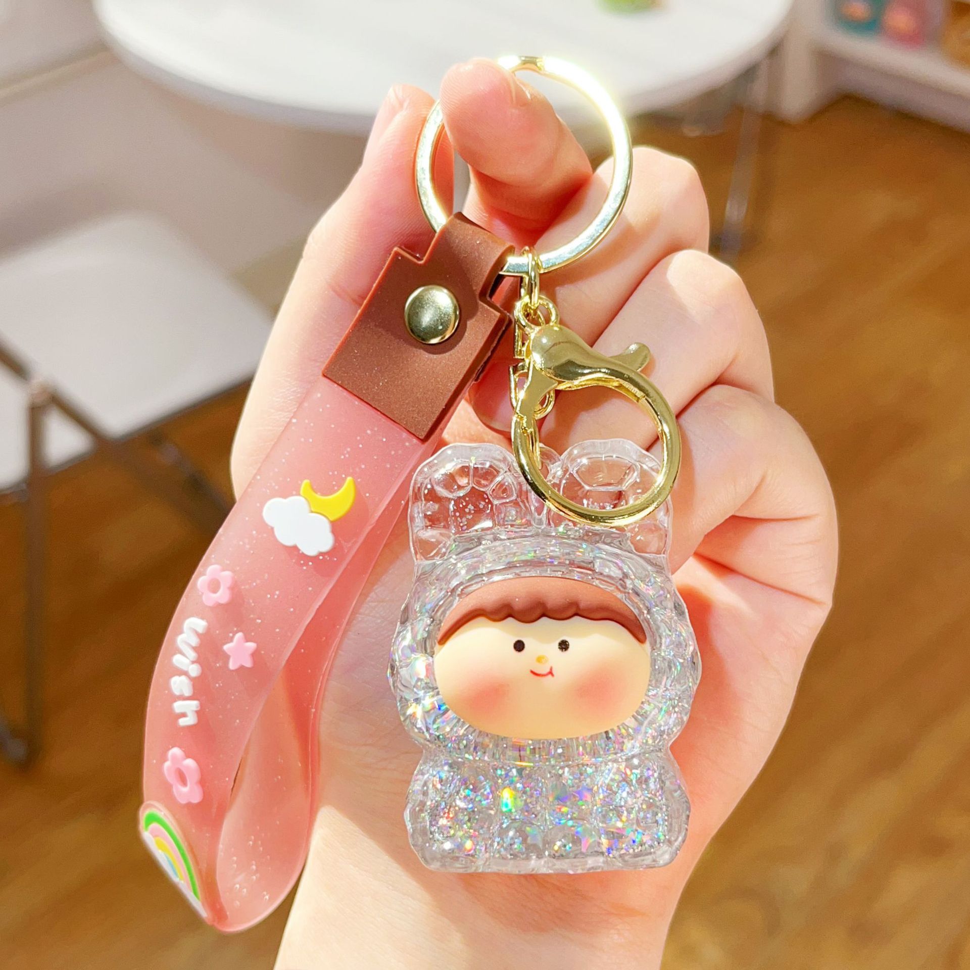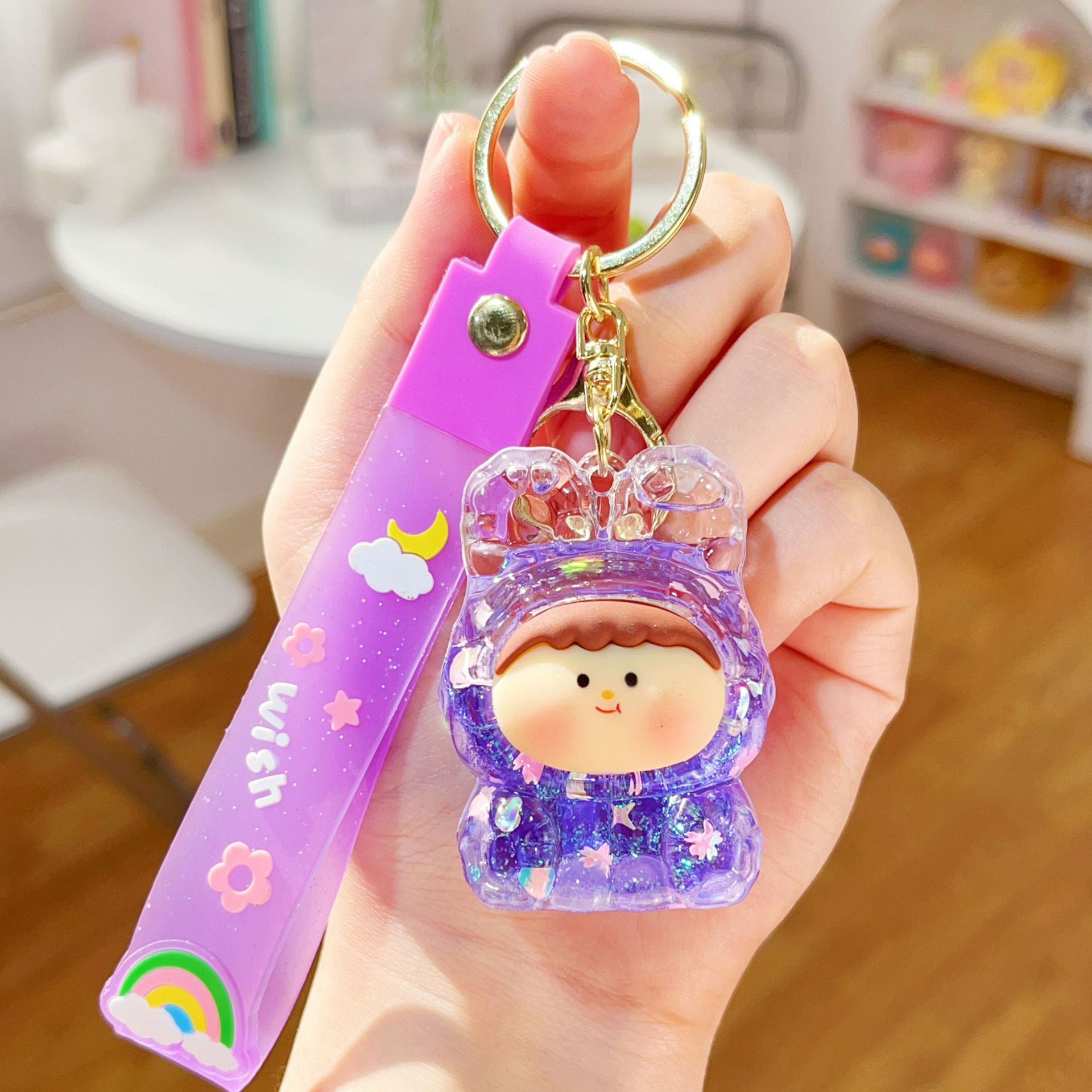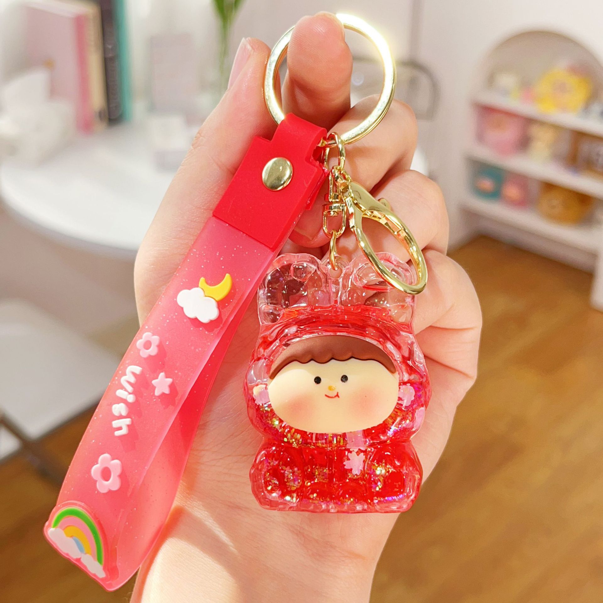 미니 릴리스 아크릴 플래시 유행 귀여운 액세서리 오일 액체 키 체인 펜던트 작은 선물 시리즈스토어 가기