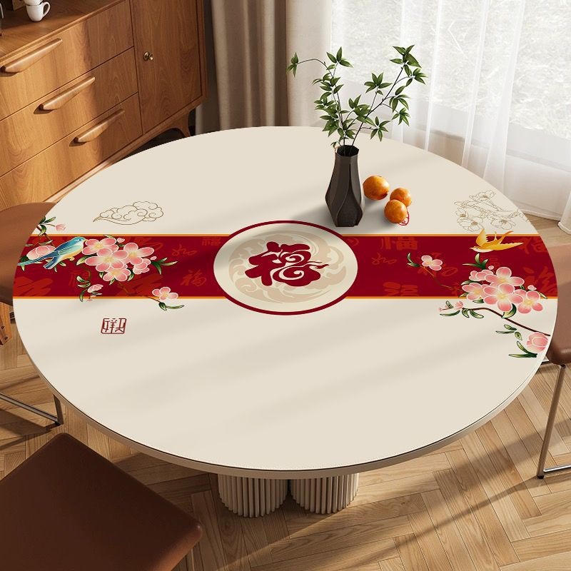 새로운 중국 스타일의 둥근 식탁 매트 방수 및 내유성 세척 불가능한 원형 테이블 식탁보 화상 방지, 단열 및 먼지 방지 탁상 보호 매트