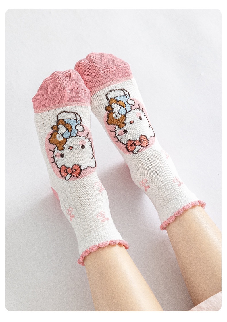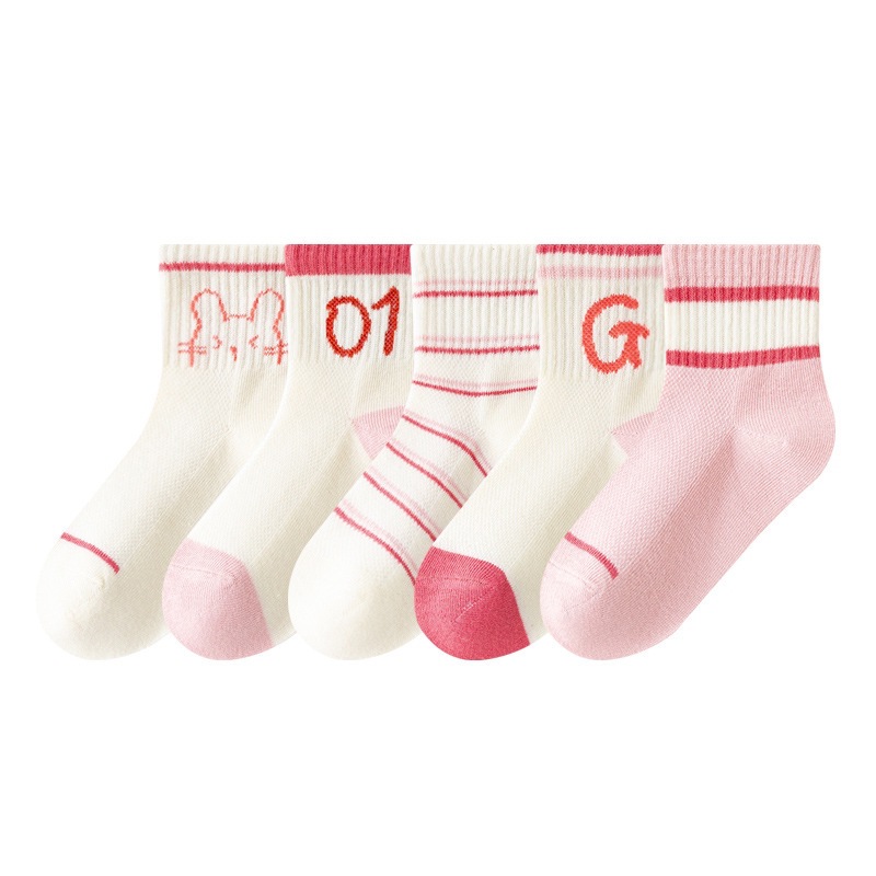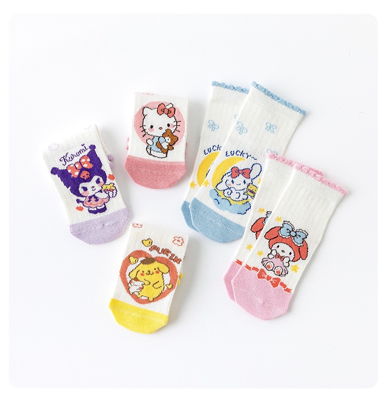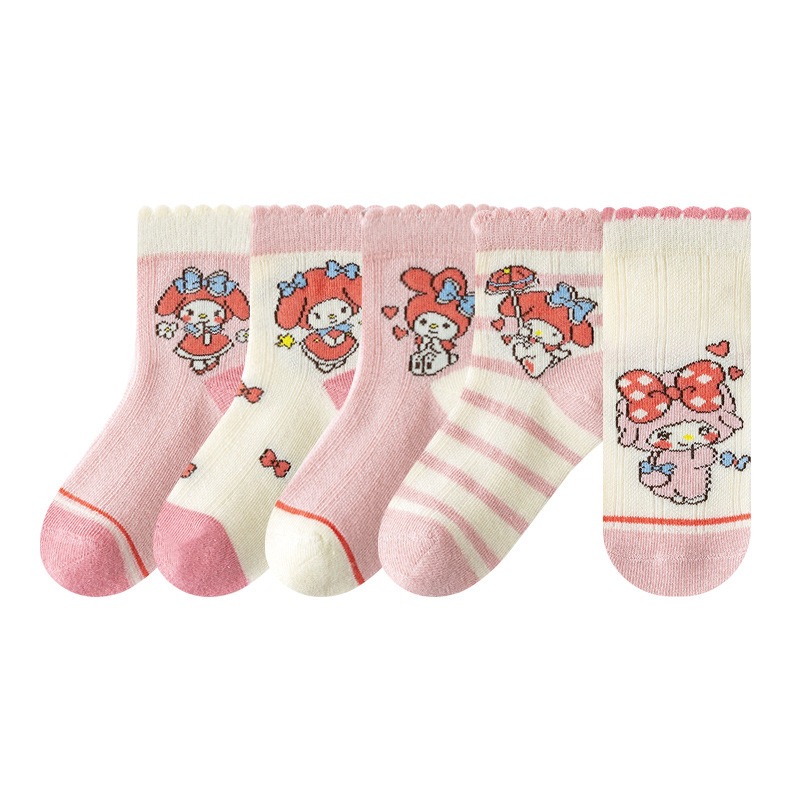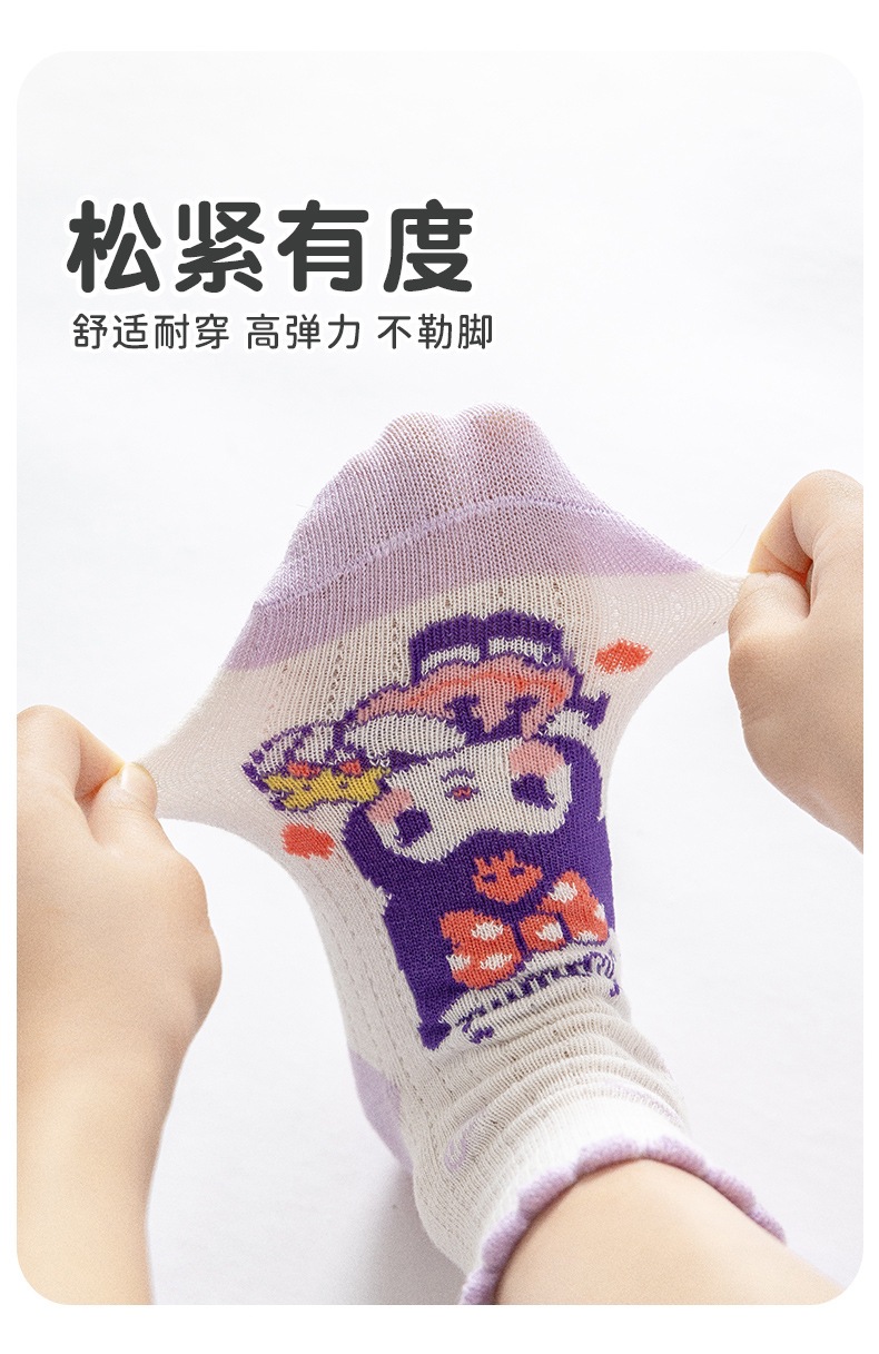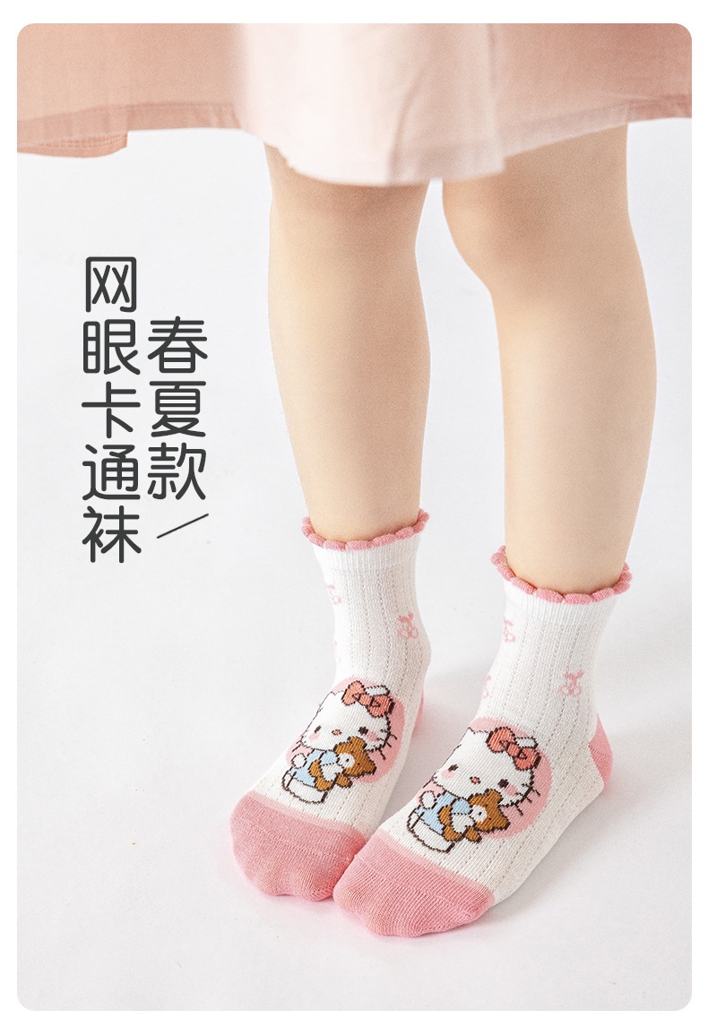 2025 봄과 여름 새로운 Sanrio 메쉬 어린이 양말 핑크 소녀 땀 흡수 통기성 아기 중간 튜브 양말 도매스토어 가기