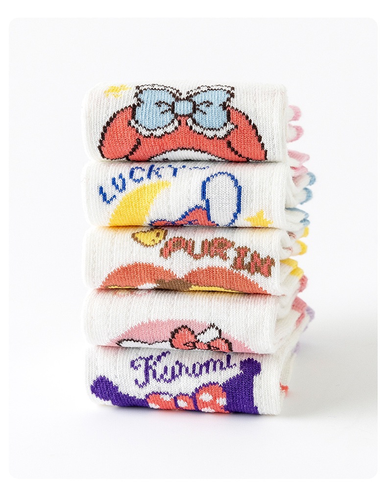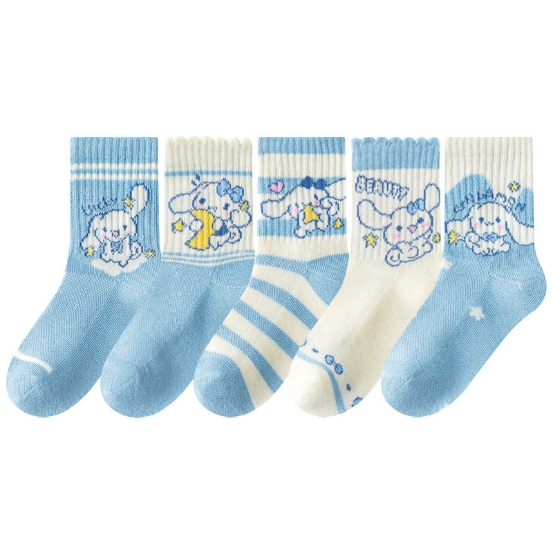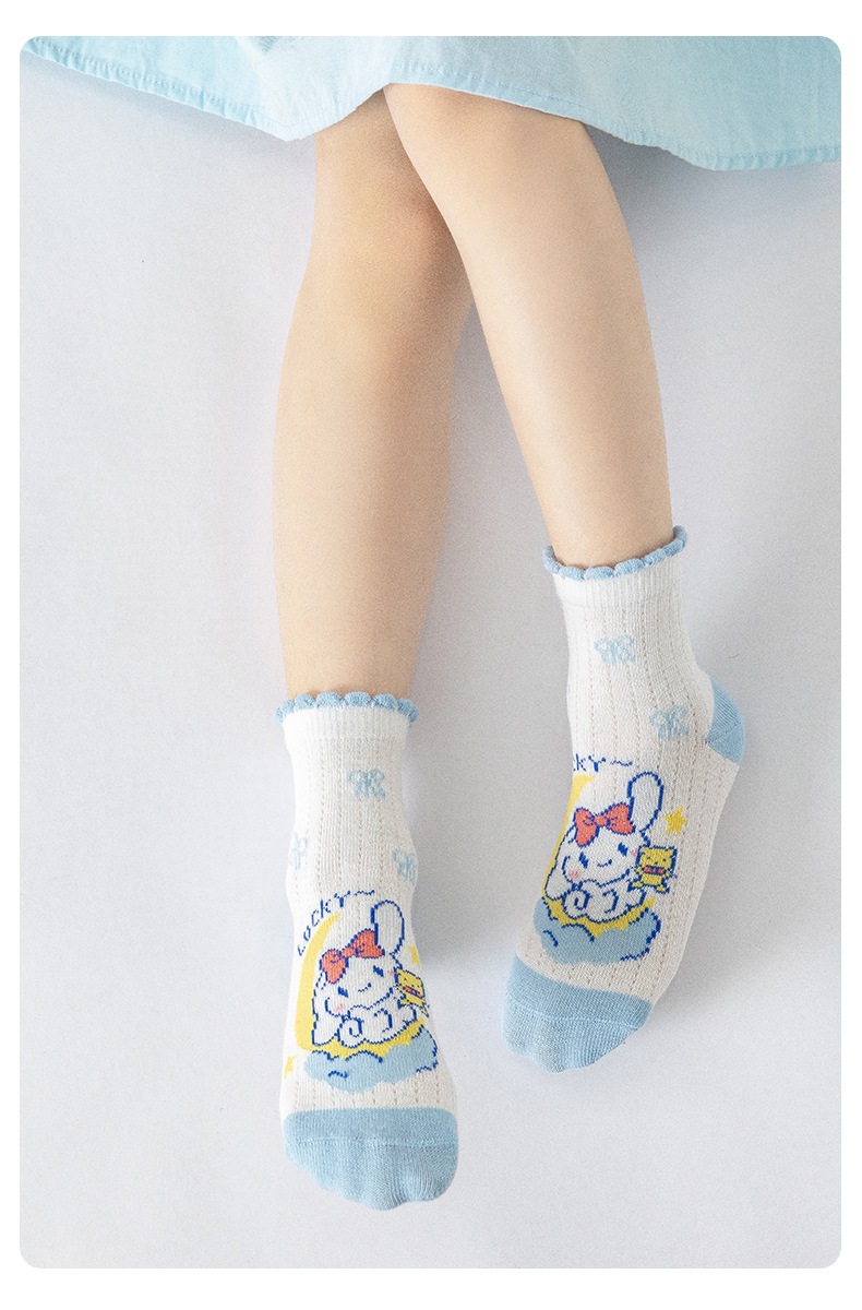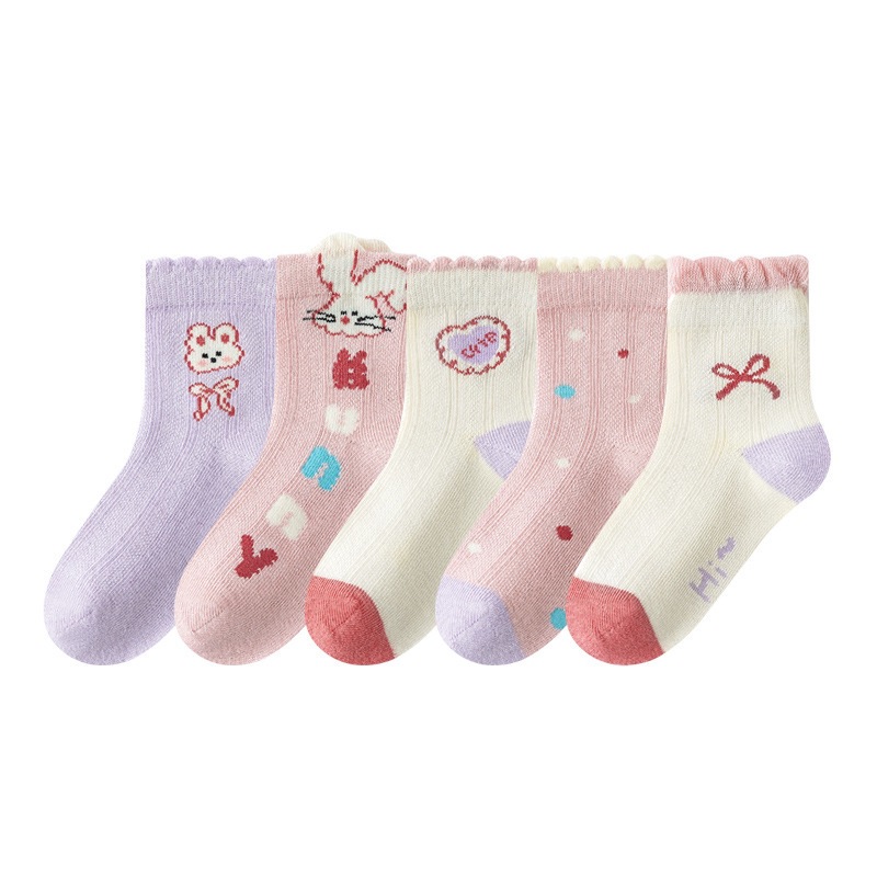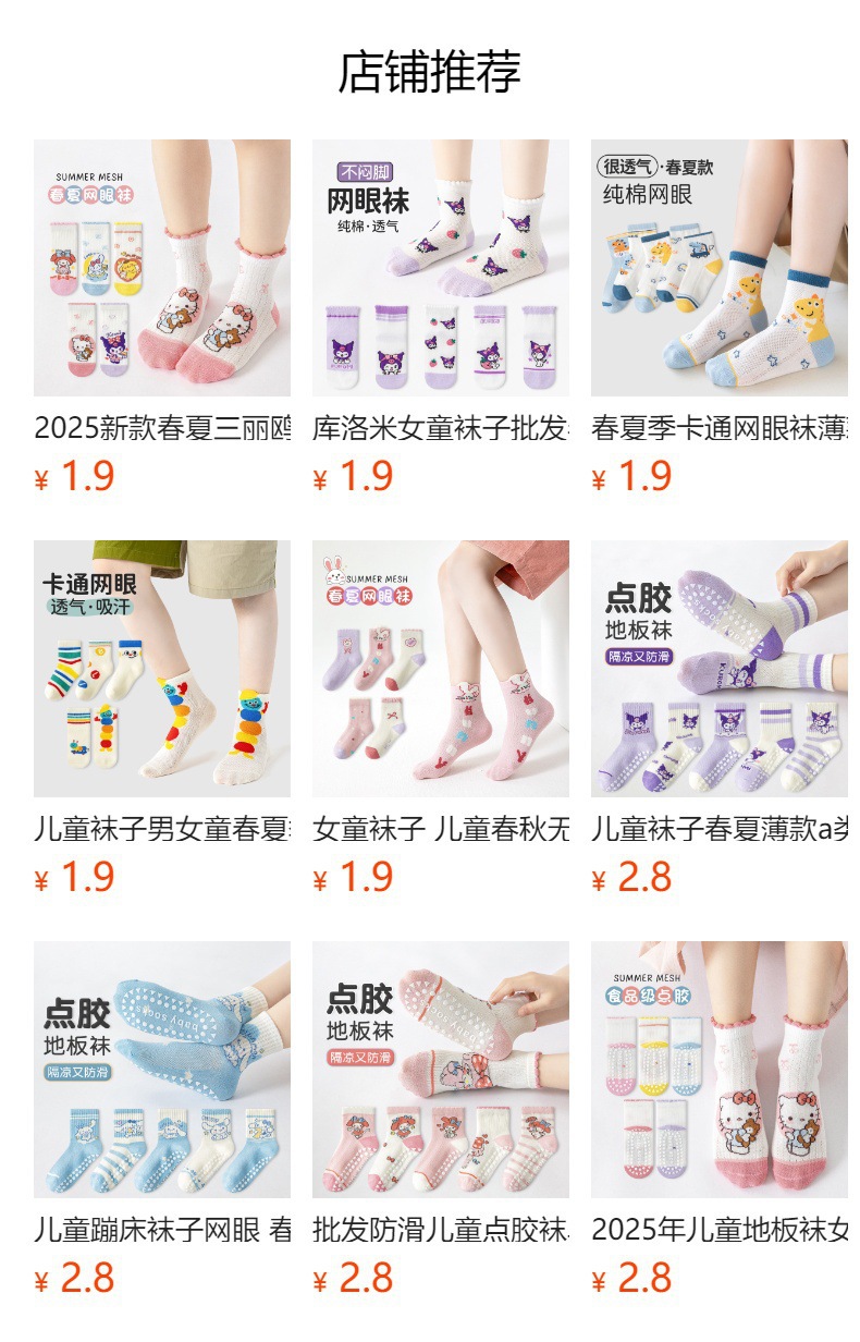 2025 봄과 여름 새로운 Sanrio 메쉬 어린이 양말 핑크 소녀 땀 흡수 통기성 아기 중간 튜브 양말 도매스토어 가기