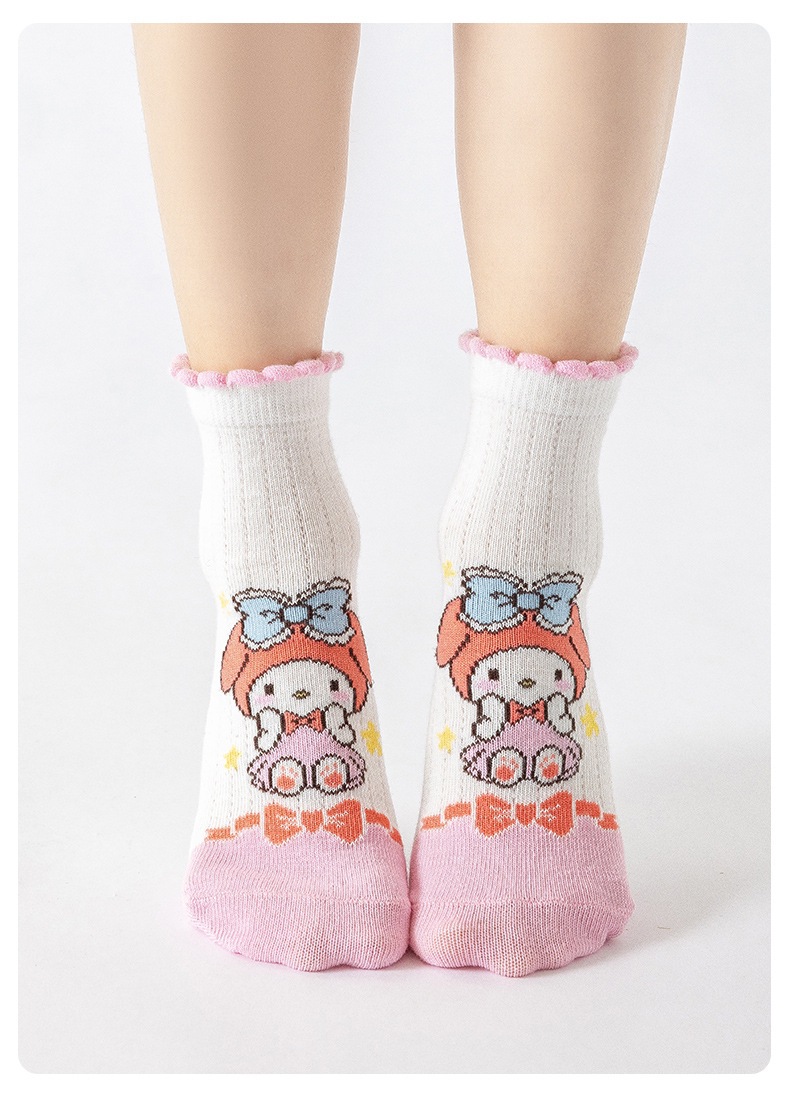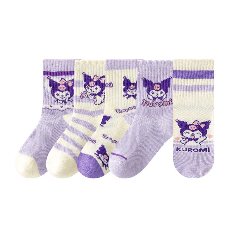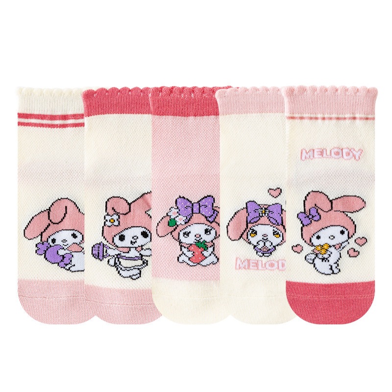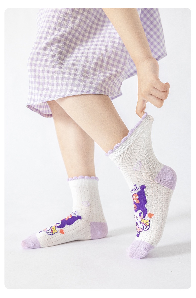 2025 봄과 여름 새로운 Sanrio 메쉬 어린이 양말 핑크 소녀 땀 흡수 통기성 아기 중간 튜브 양말 도매
