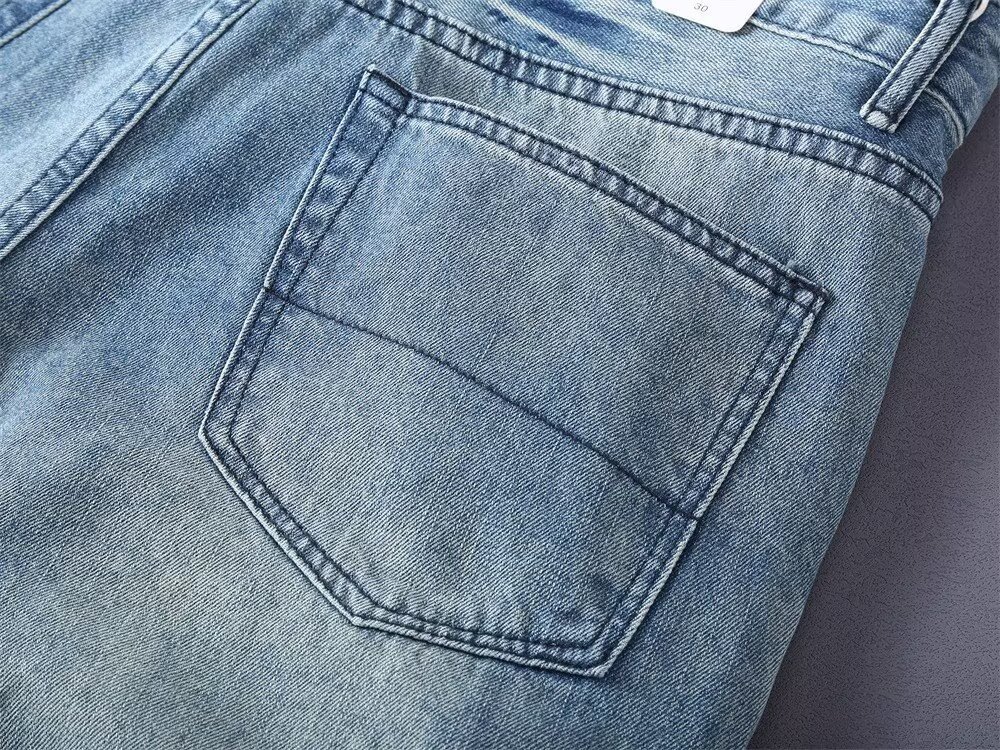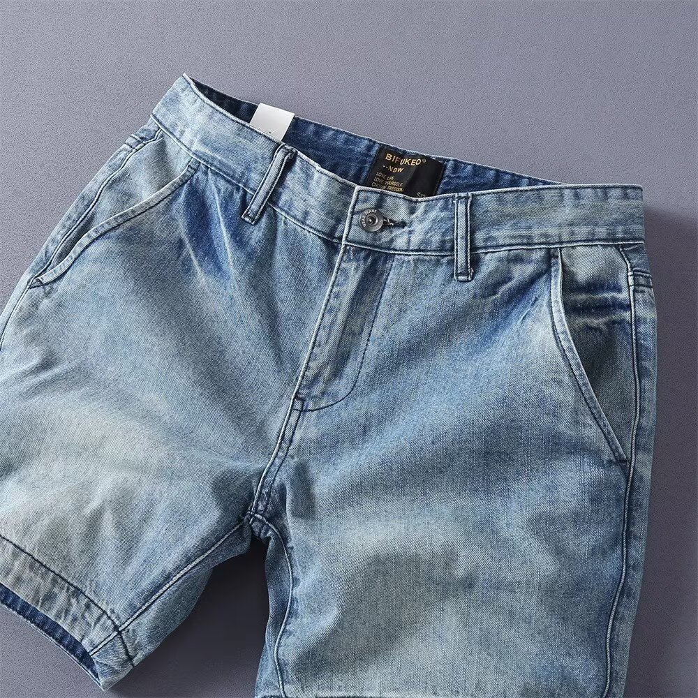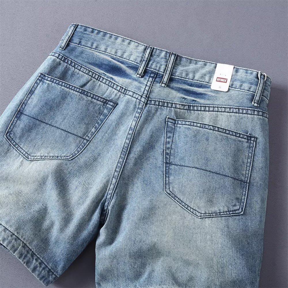 트렌디한 남성 데님 반바지 워싱 스트레이트 캐주얼 청바지 아메리칸 레트로 루즈 캐주얼 다용도 3점 팬츠