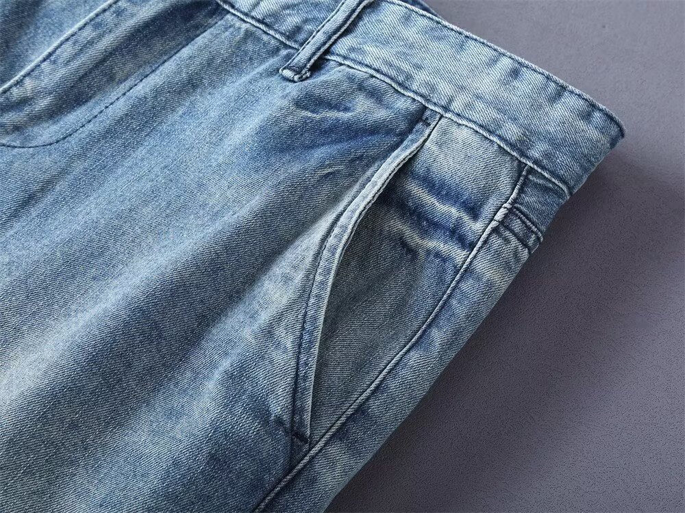 트렌디한 남성 데님 반바지 워싱 스트레이트 캐주얼 청바지 아메리칸 레트로 루즈 캐주얼 다용도 3점 팬츠스토어 가기