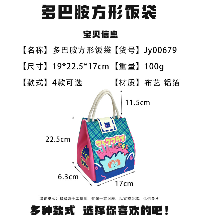 도파민 도시락통 대용량 도시락 가방 휴대용 수납 가방 초등학생 도시락 가방 휴대용 도시락 가방