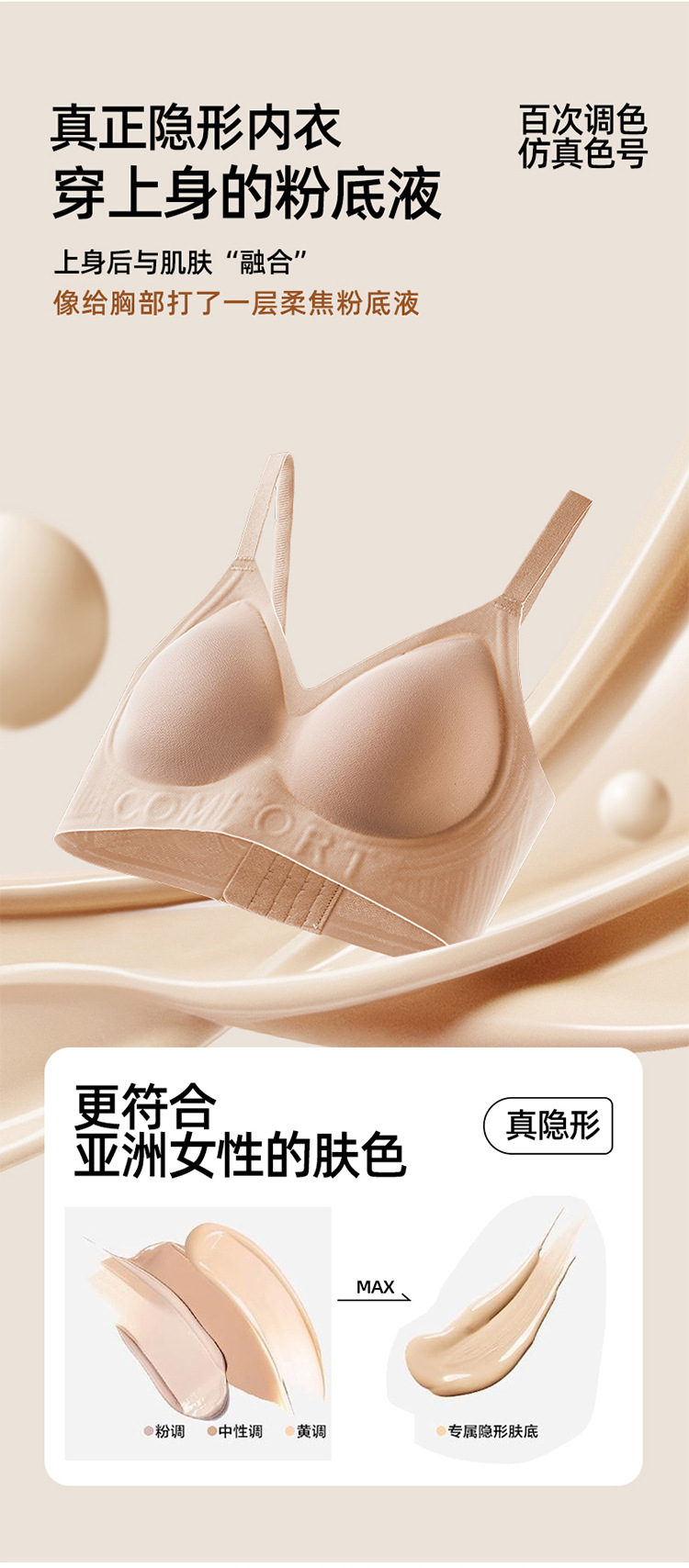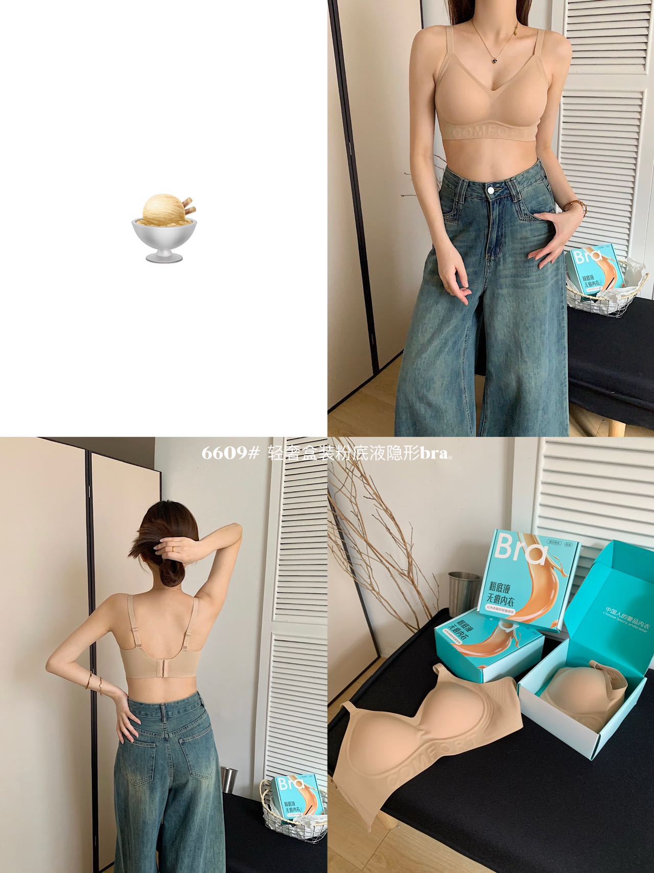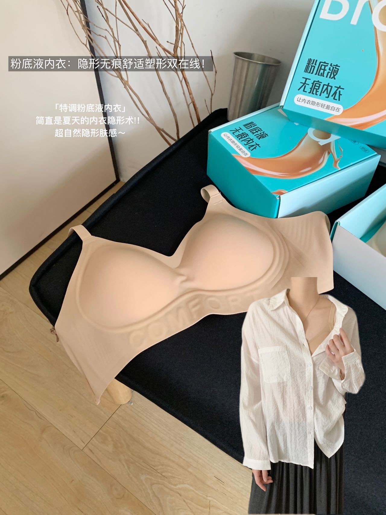 6609 # 라이트 럭셔리 박스형 리퀴드 파운데이션 보이지 않는 흔적 없는 속옷 여성용 통기성 리프팅 푸시 업 브라 여성용 선물 상자