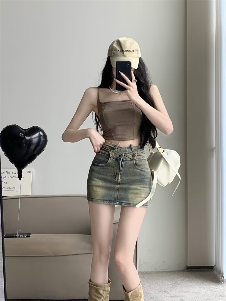 여름 핫걸들을 위한 아메리칸 레트로 데님 스커트, 쁘띠 숏 스커트, 신상 하이웨이스트 A라인 스커트, 힙 커버 스커트스토어 가기