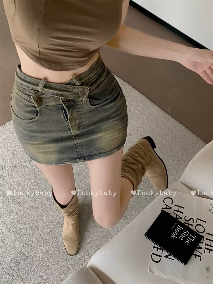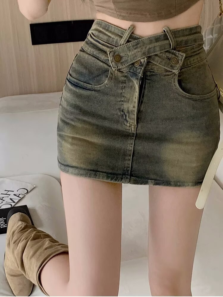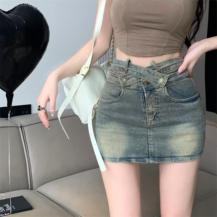 여름 핫걸들을 위한 아메리칸 레트로 데님 스커트, 쁘띠 숏 스커트, 신상 하이웨이스트 A라인 스커트, 힙 커버 스커트