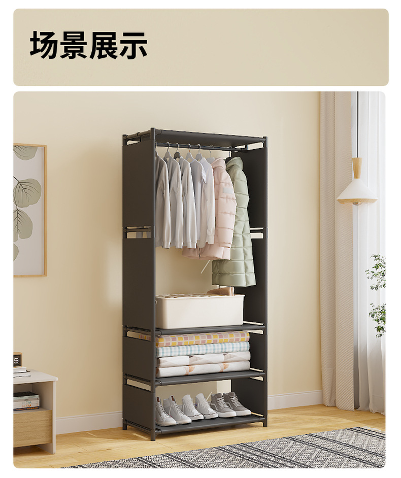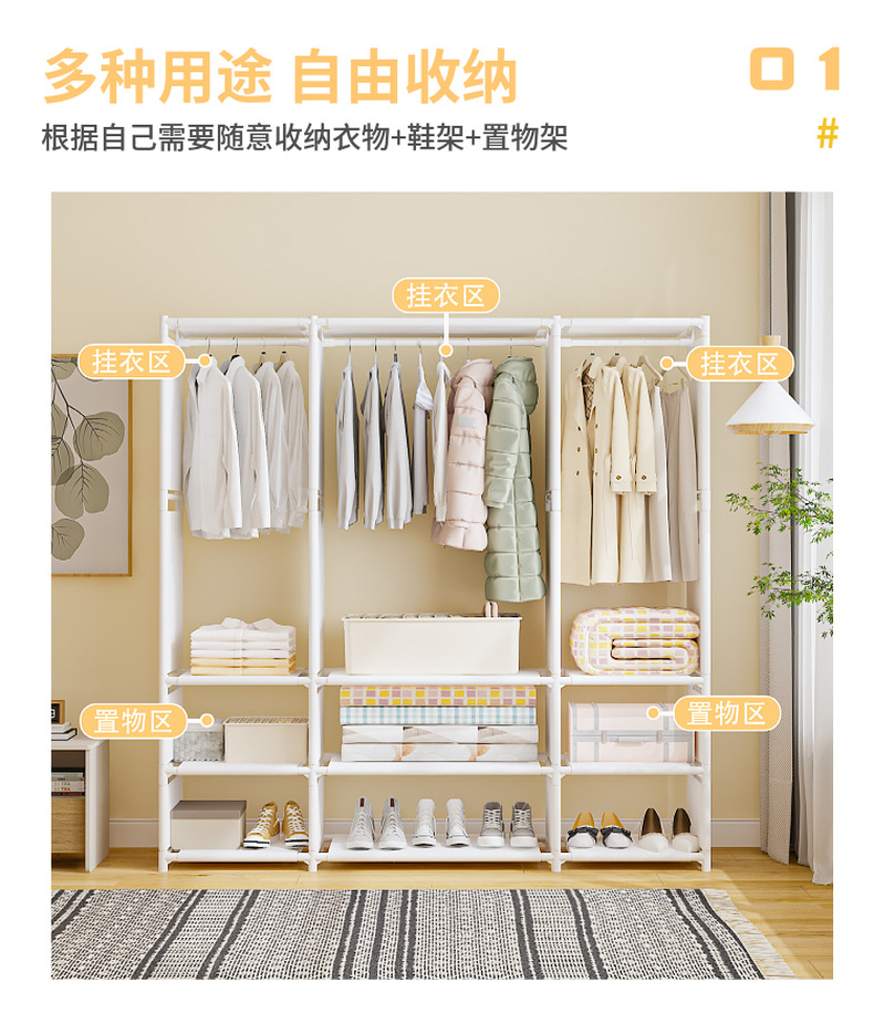 간단한 코트 랙 방진 의류 보관 랙 조합 코트 랙 다기능 금속 튜브 방진 코트 랙스토어 가기