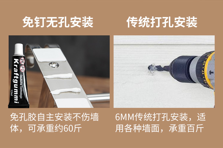 욕실용 펀치 없는 수건걸이 304 스테인레스 스틸 목욕 수건걸이 봉 수납 선반 욕실 수납 화장실 벽 분수 용융