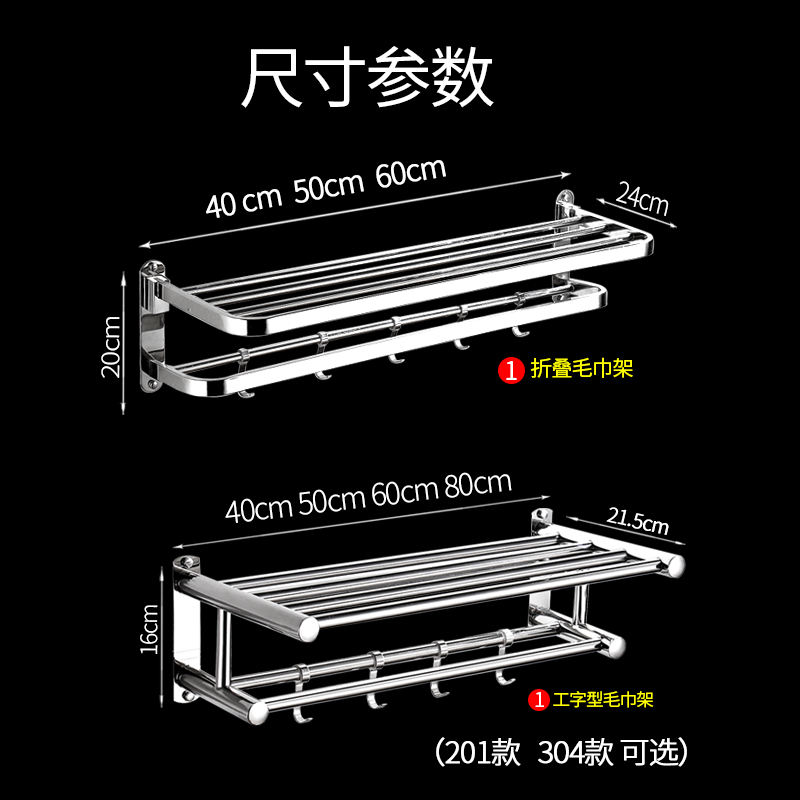 욕실용 펀치 없는 수건걸이 304 스테인레스 스틸 목욕 수건걸이 봉 수납 선반 욕실 수납 화장실 벽 분수 용융스토어 가기