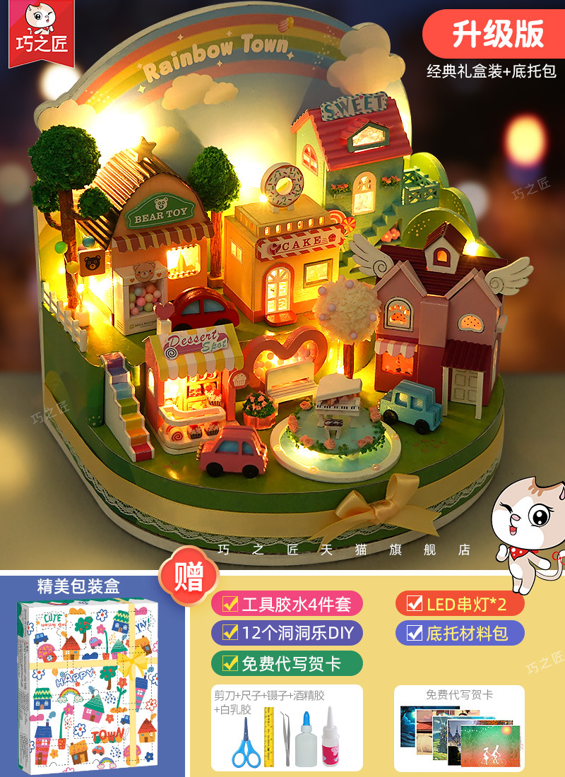 • ★ 적극 권장 조합] 케이크 가게 + 앤티크 램프 상자 + 도구 접착제 + LED 조명 + 핸드 스위치