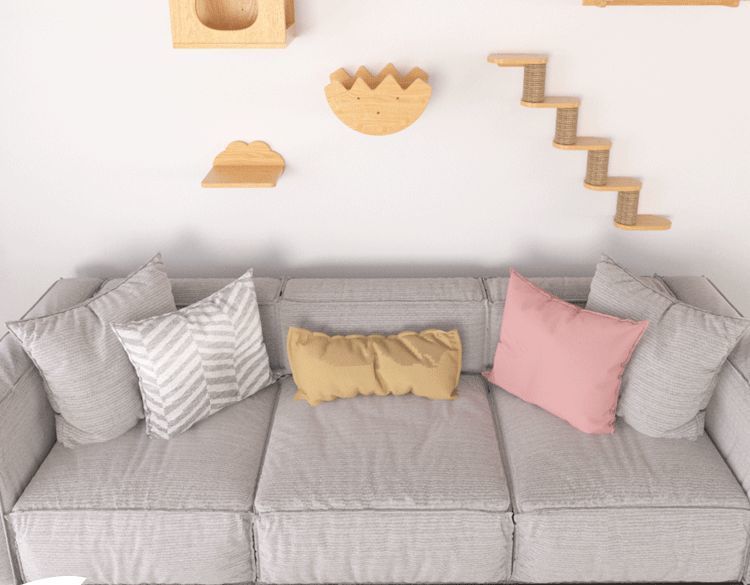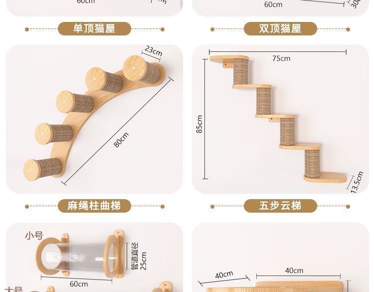 단단한 소나무 벽걸이형 고양이 클라이밍 프레임, 작은 아파트, 공간 절약형, 벽걸이형 고양이 장난감, 다기능 고양이 빌라 복도스토어 가기