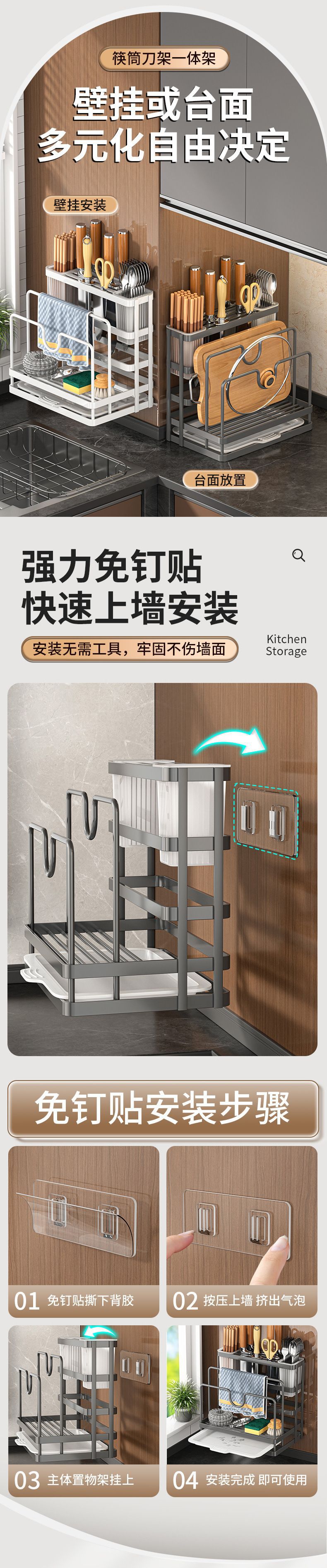 주방칼걸이, 젓가락케이지, 가정용 다기능 조리대 도마걸이, 도마 및 칼 일체형 수납선반