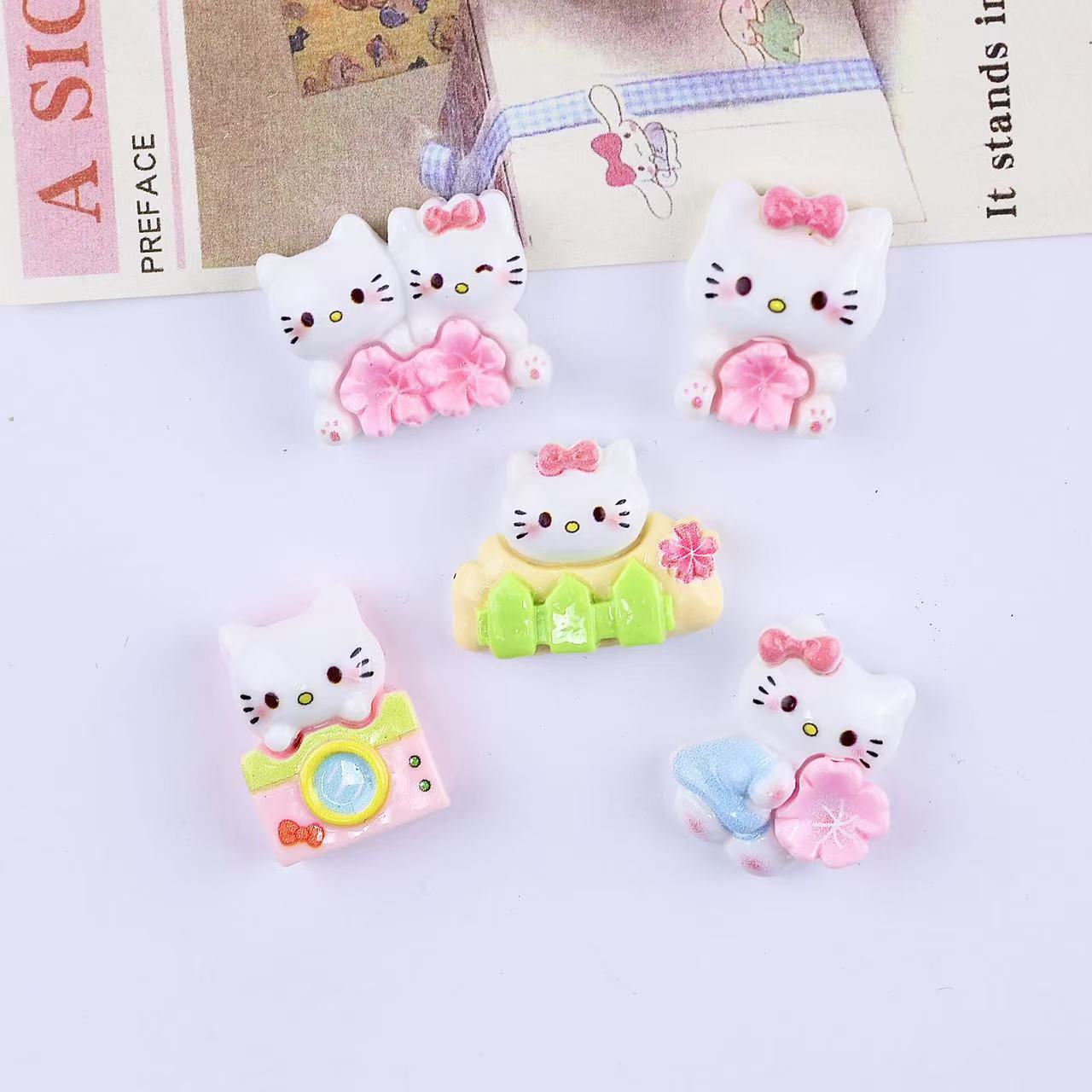 만화 diy 수지 작은 액세서리 쥬얼리 귀여운 벚꽃 kt 고양이 오일 접착제 헤어 액세서리 머리핀 휴대 전화 케이스 구멍 신발 액세서리스토어 가기