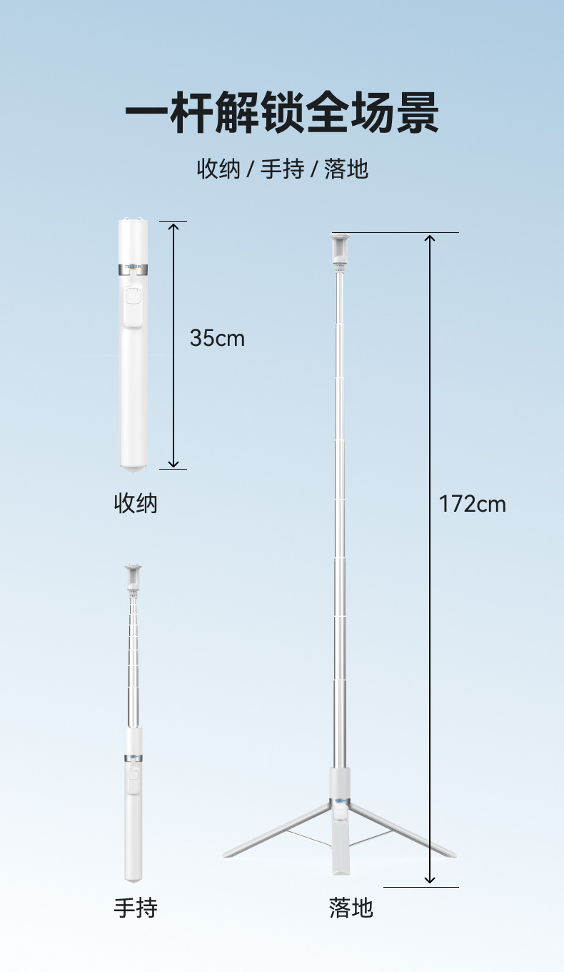 • 1.8m 휴대용 셀카봉 삼각대