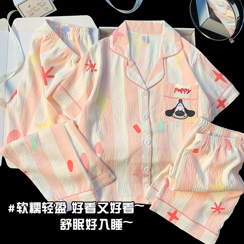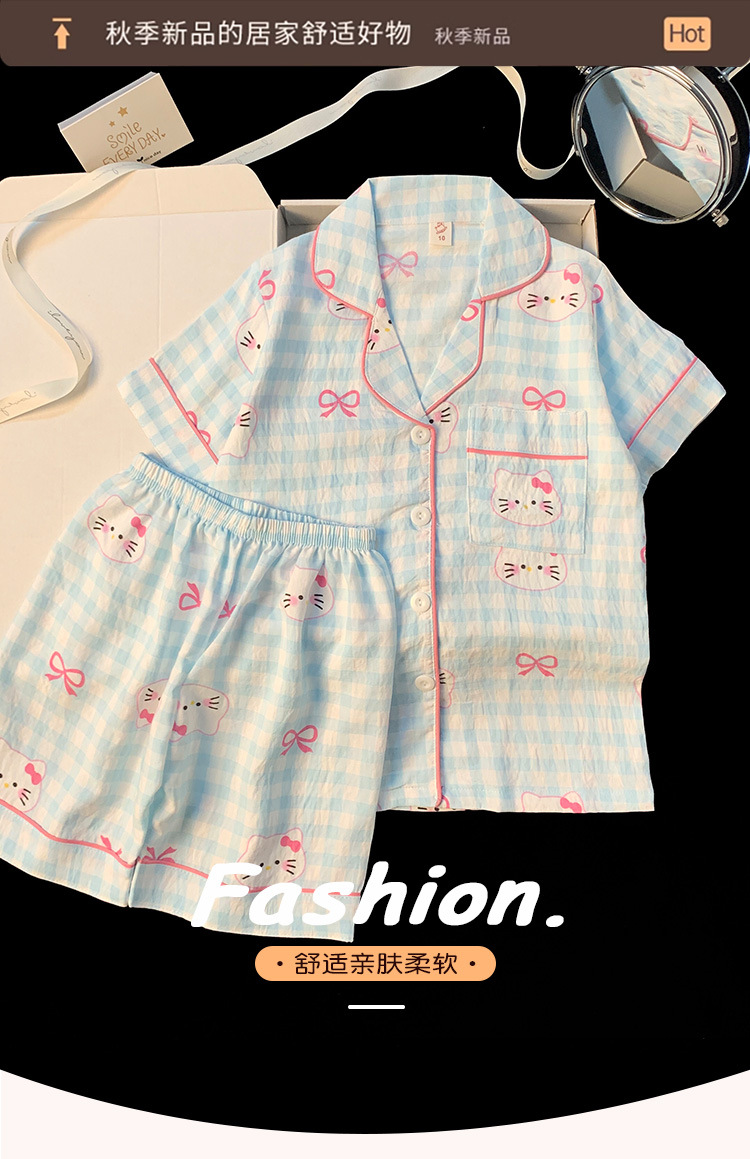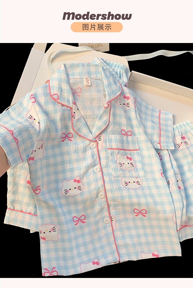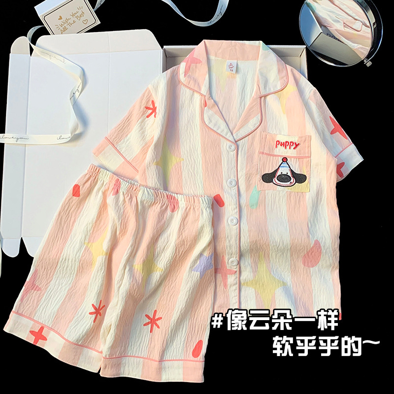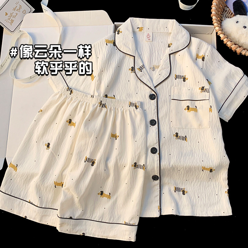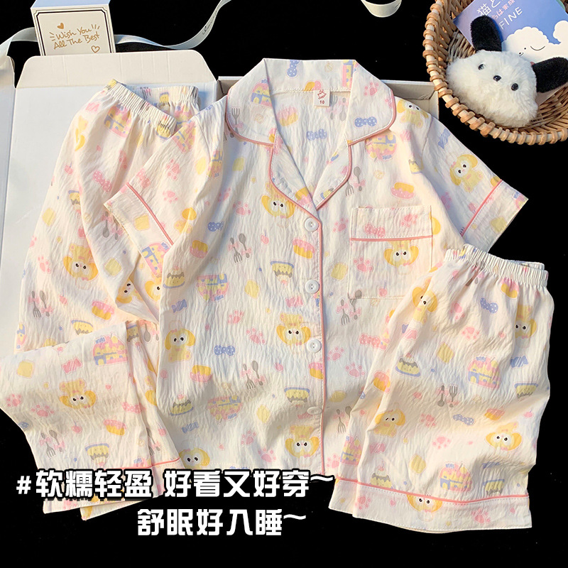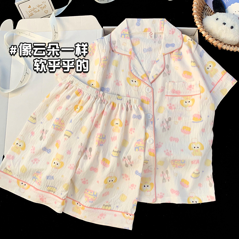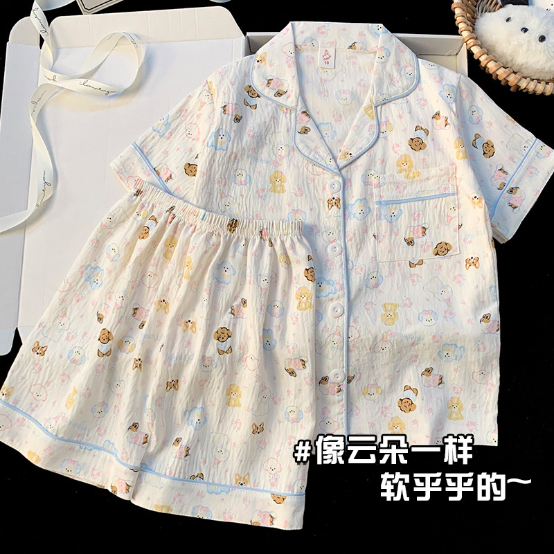 어린이 잠옷 소녀 여름 새로운 클라우드 코튼 2025 여성 달콤한 반팔 반바지 소녀 중대형 어린이 가정 의류스토어 가기