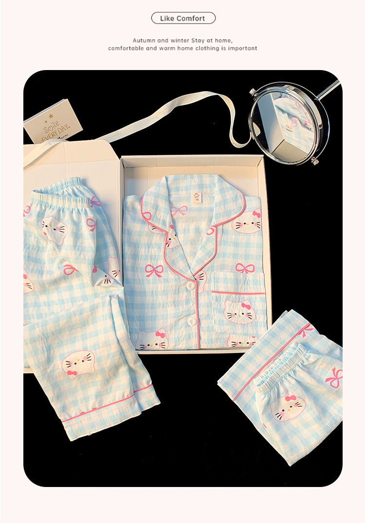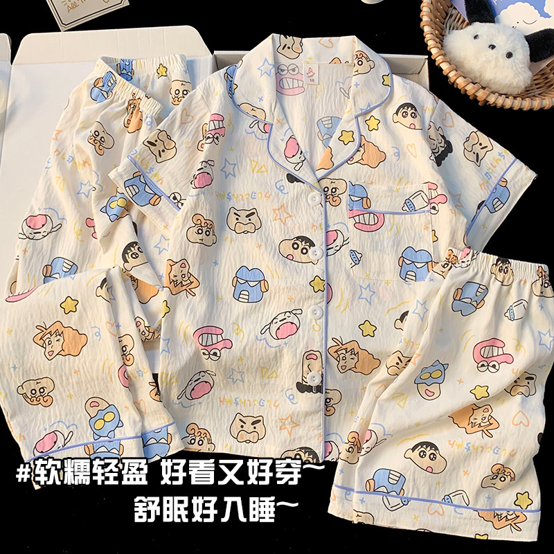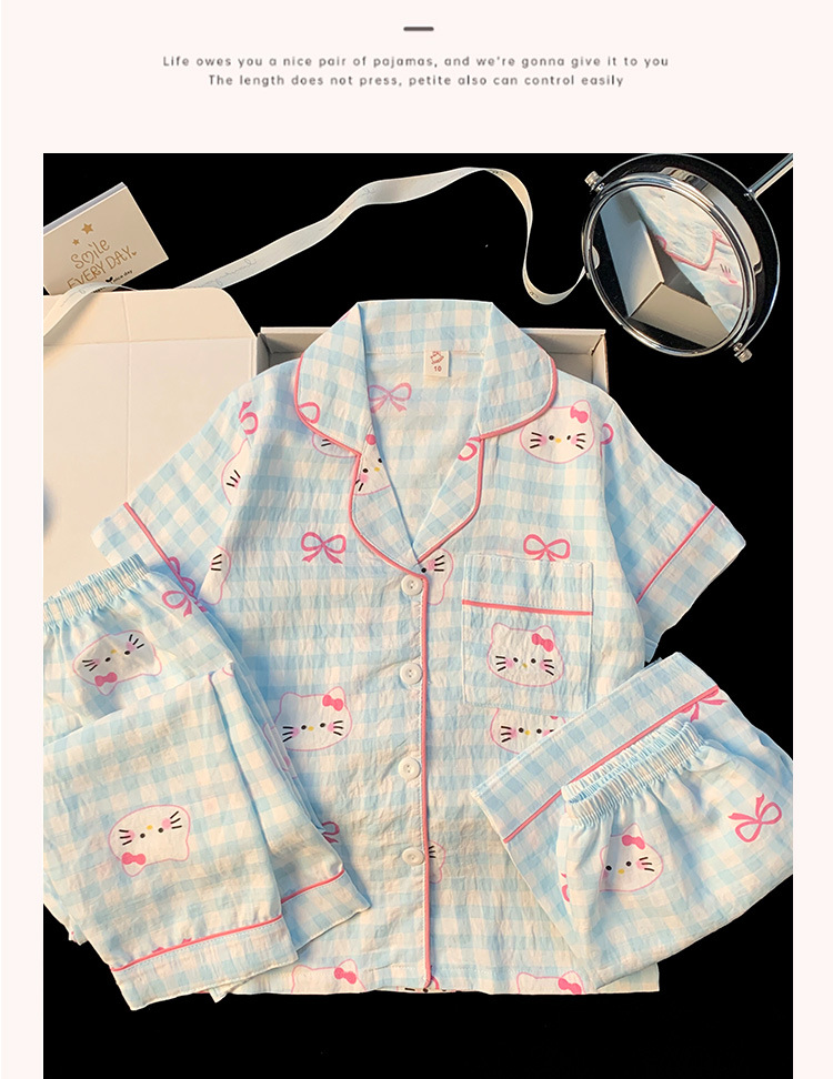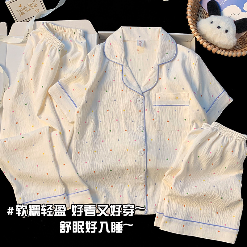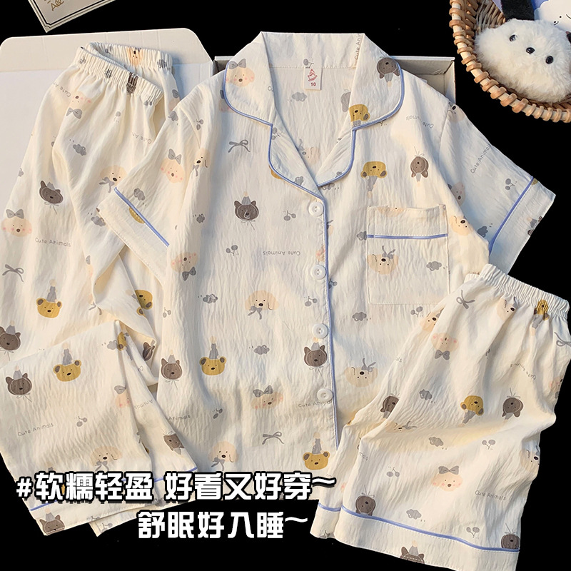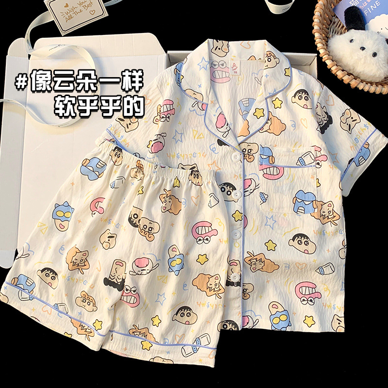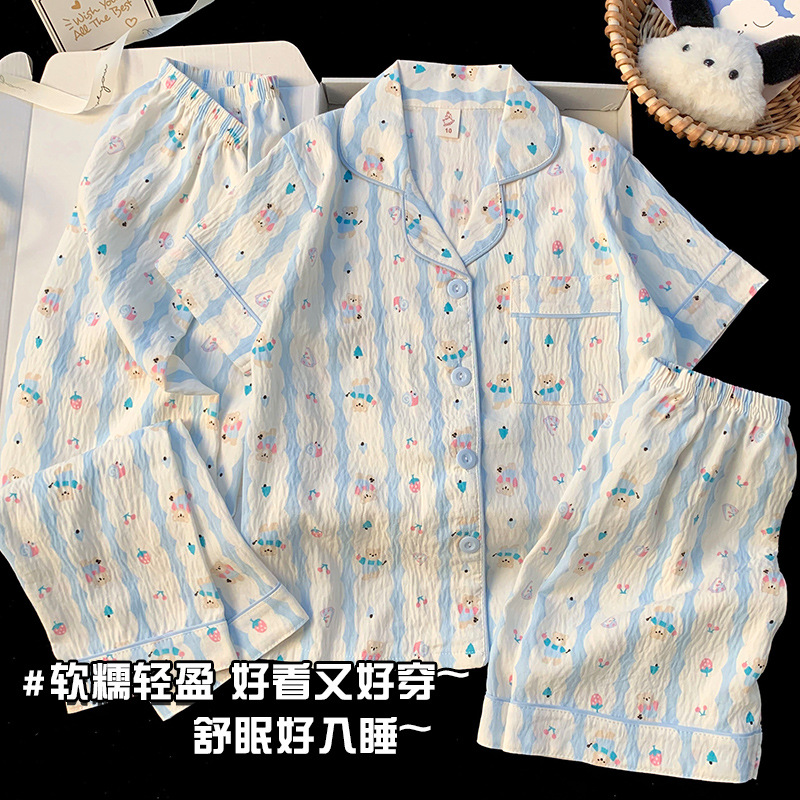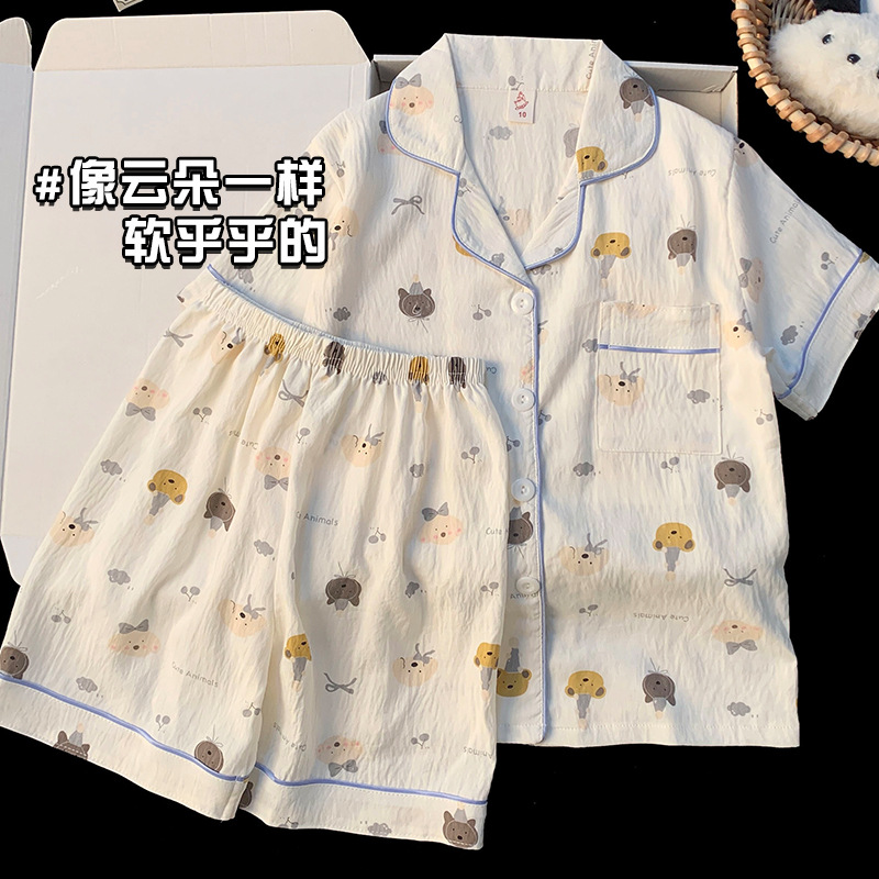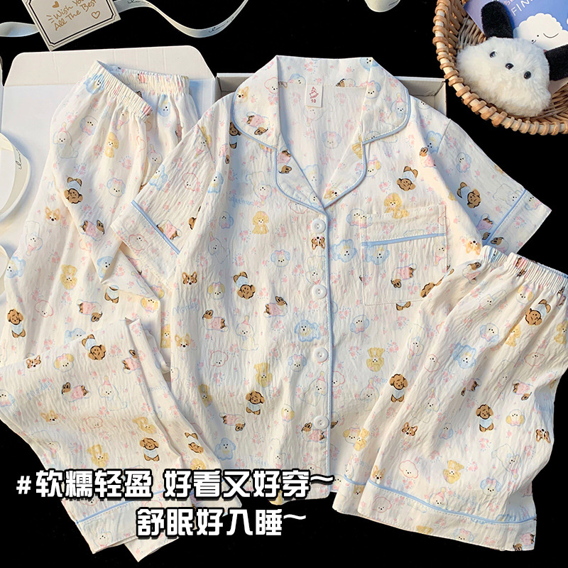 어린이 잠옷 소녀 여름 새로운 클라우드 코튼 2025 여성 달콤한 반팔 반바지 소녀 중대형 어린이 가정 의류스토어 가기