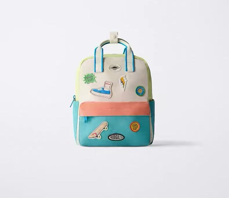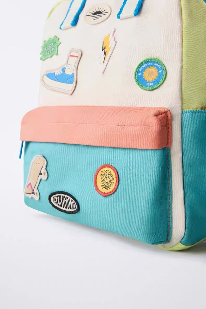 국경을 넘는 신제품 패치 장식 어린이 배낭 배색 만화 캐릭터 백팩 유아 여행 레저 가방