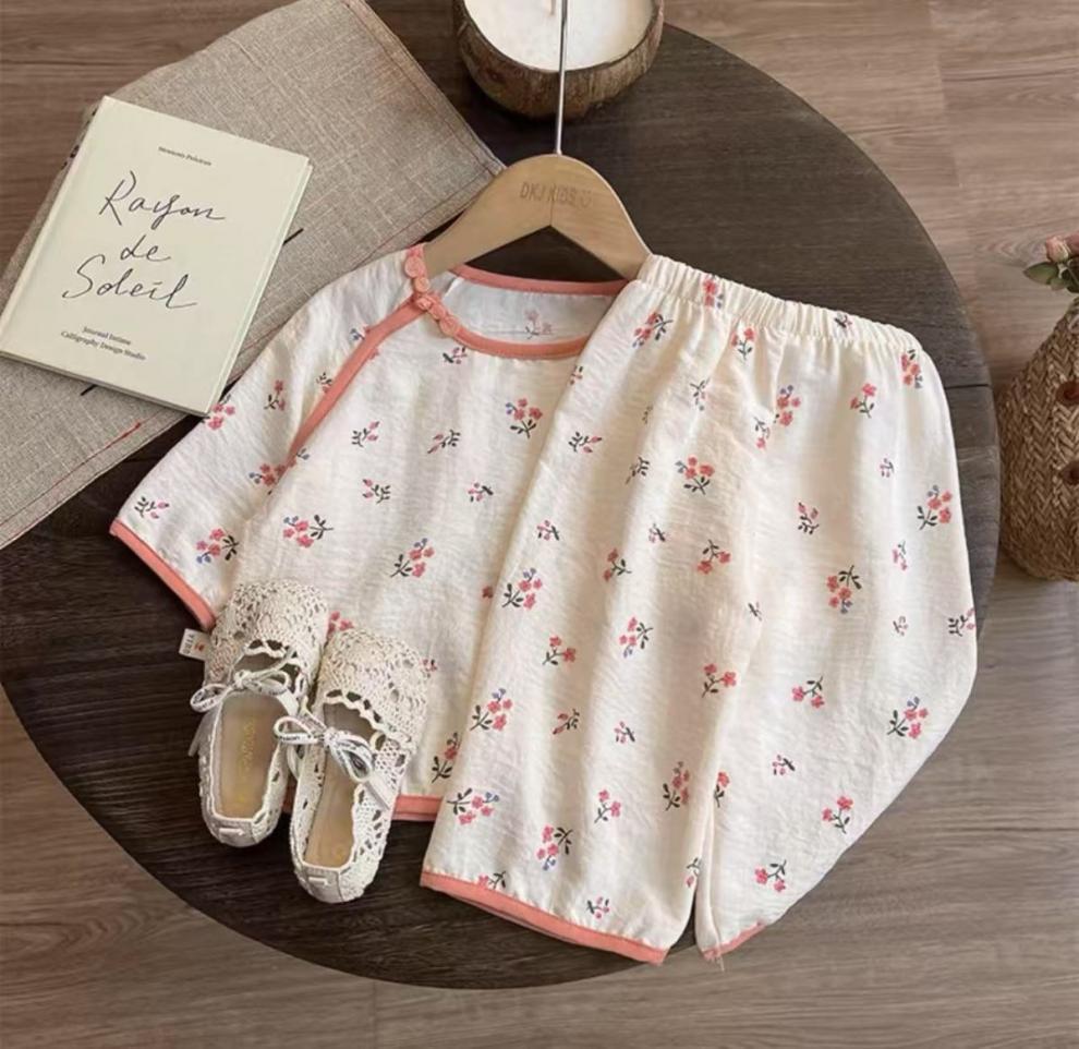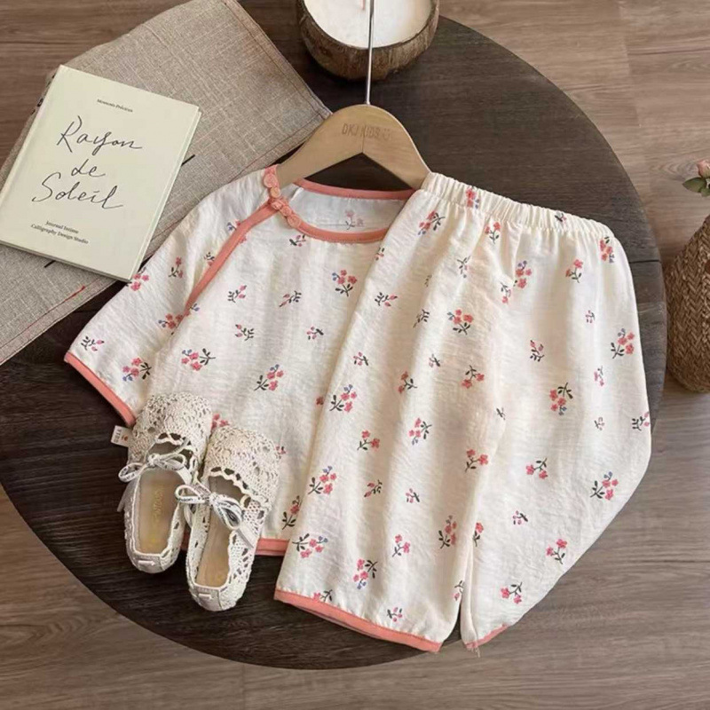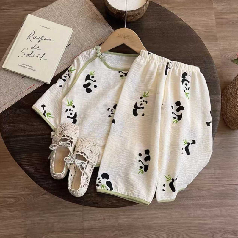 여아용 새로운 중국 스타일 양복, 여름 얇은 남아용 한복 요소, 7부 반팔 잠옷, 에어컨 의류, 가정복스토어 가기