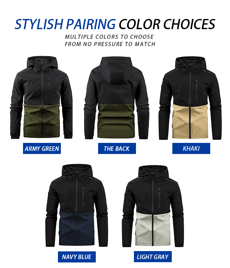 봄과 가을 새로운 남성 후드 재킷 캐주얼 방풍 야외 크로스 보더 재킷 재킷 탑 다목적 색상 매칭