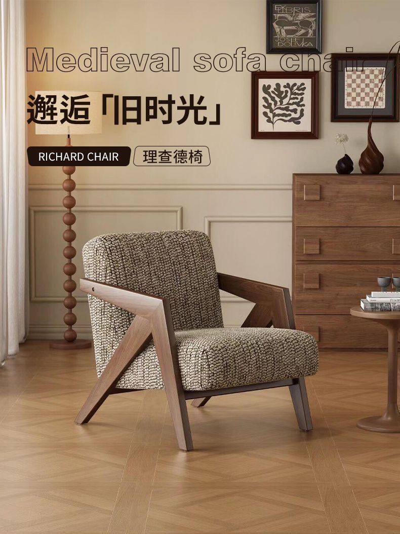 Richard 싱글 소파 의자 프랑스 중고 거실 발코니 레저 의자 단단한 나무 디자이너 게으른 소파 의자스토어 가기