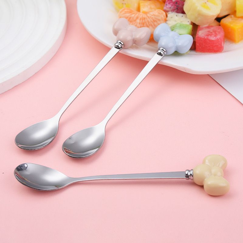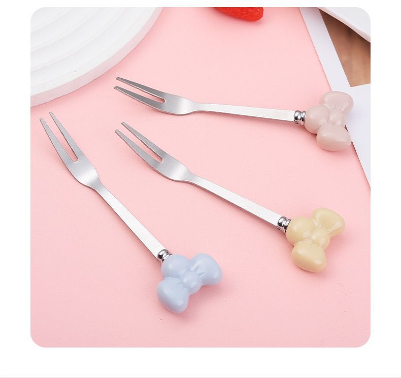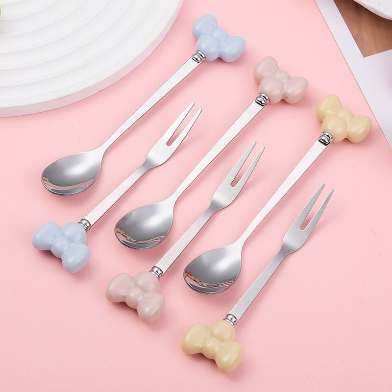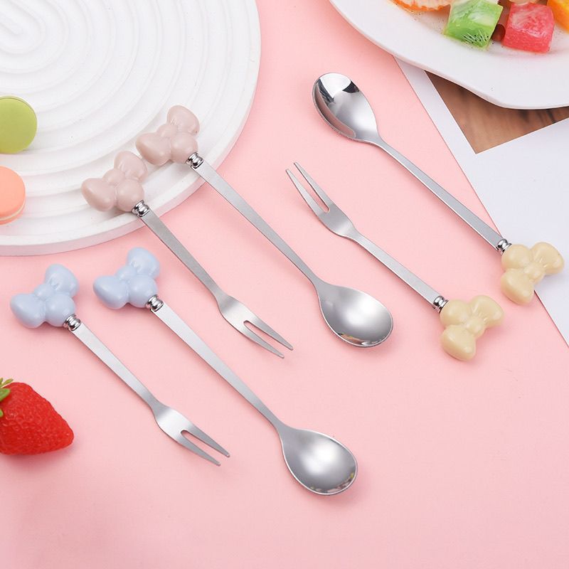 크리 에이 티브 모조 도자기 나비 손잡이 스테인레스 스틸 과일 포크 휴대용 디저트 스푼 커피 교반 스푼 가정용 귀여운