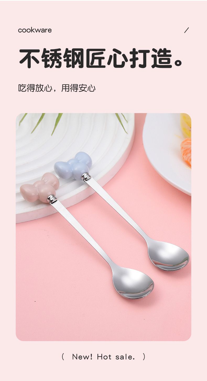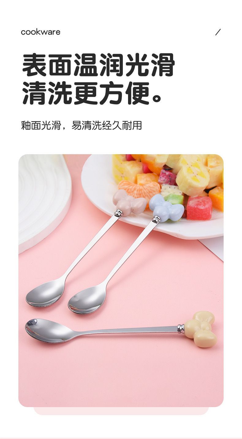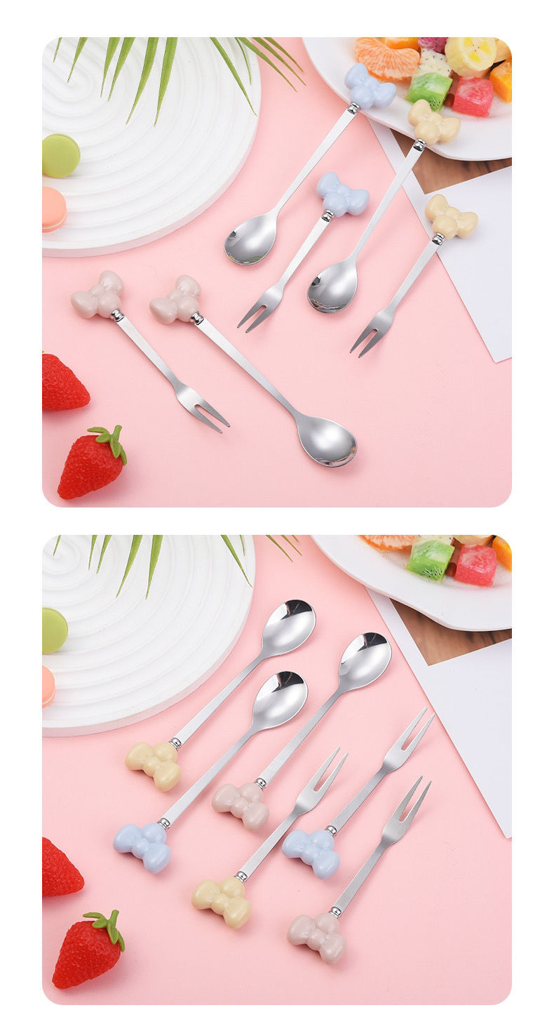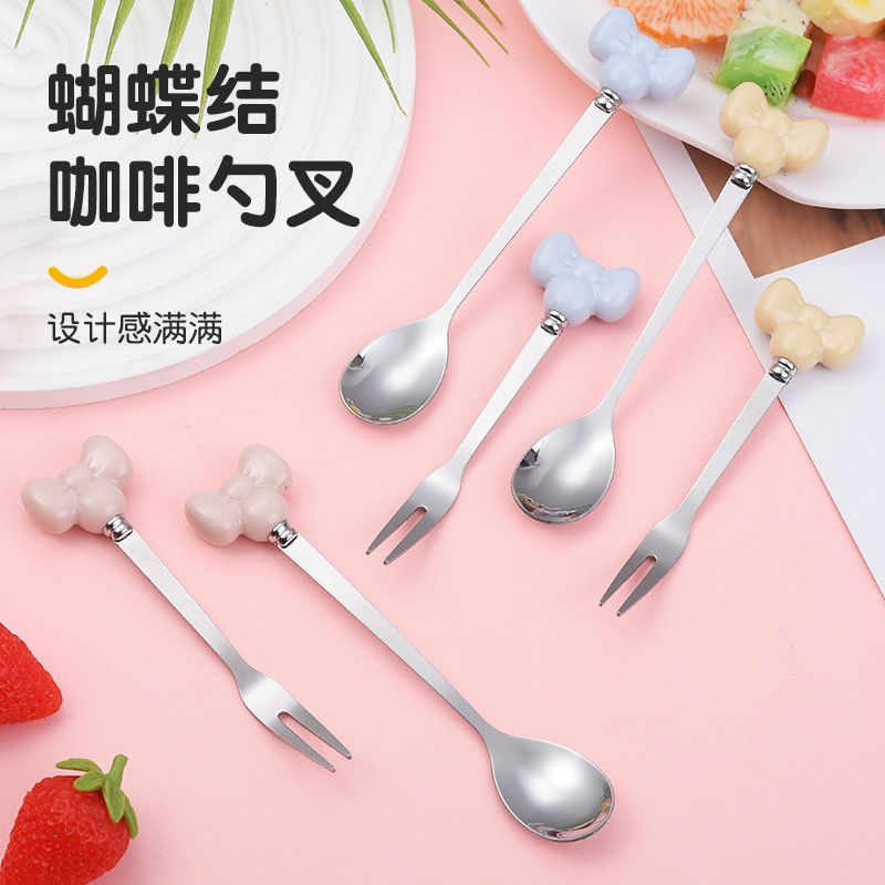 크리 에이 티브 모조 도자기 나비 손잡이 스테인레스 스틸 과일 포크 휴대용 디저트 스푼 커피 교반 스푼 가정용 귀여운스토어 가기