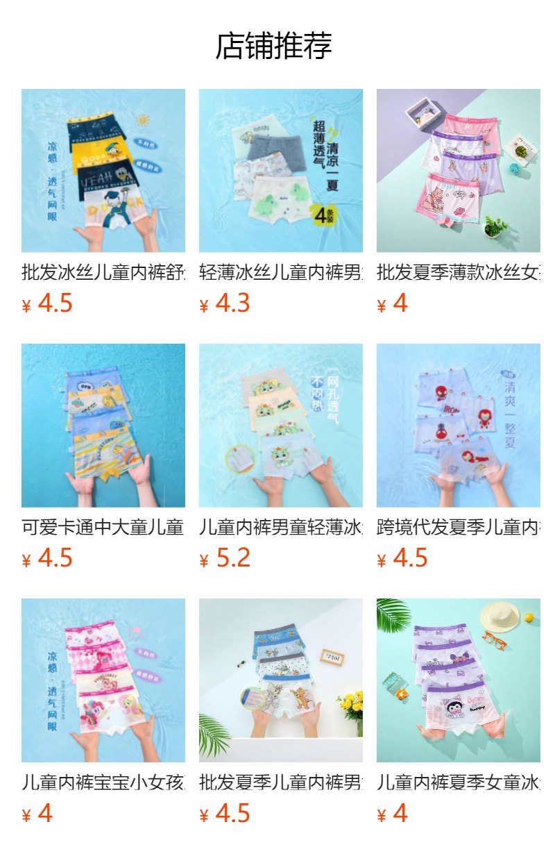 아동 속옷, 남아용 아이스 실크 사각 팬티, 여름용, 중대형 아동용 사각 통기성 반바지, 엉덩이를 조이지 않는 아기스토어 가기