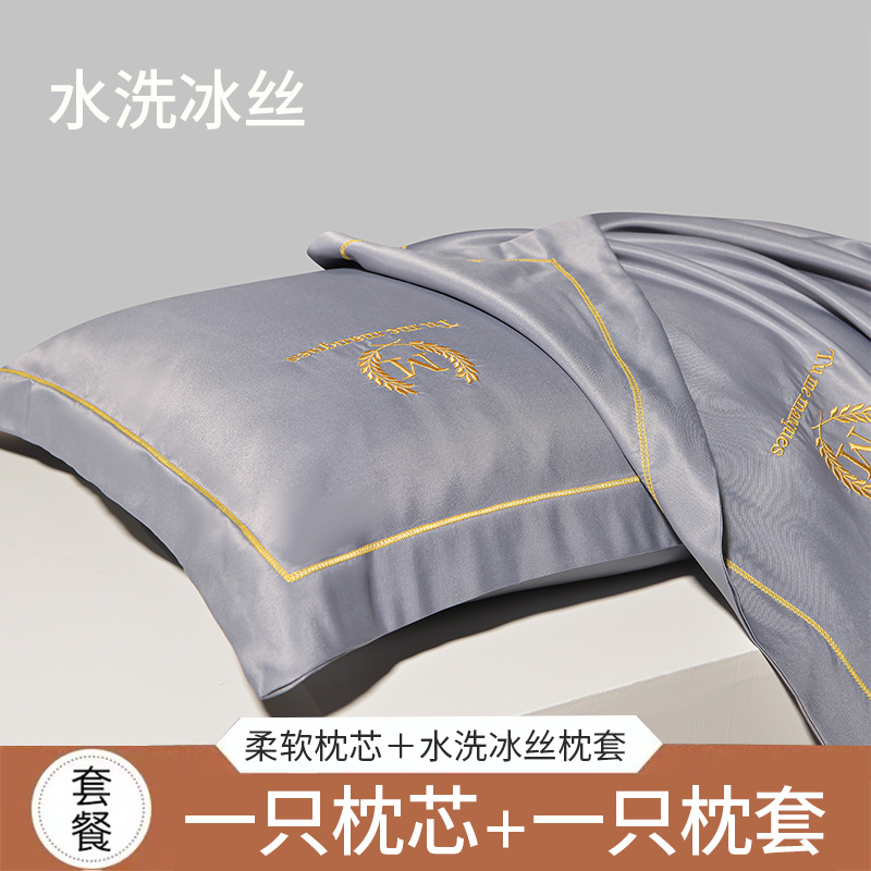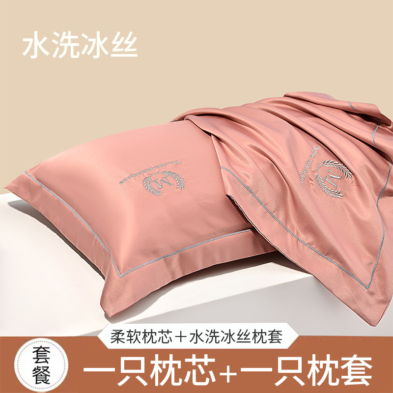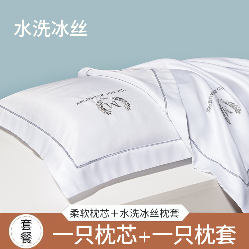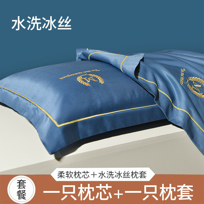 베갯잇이 포함된 여름 시원한 베개, 얼음 실크 높은 베개 코어, 경추 보호, 수면 보조, 학생 기숙사, 남성용 싱글 팩스토어 가기
