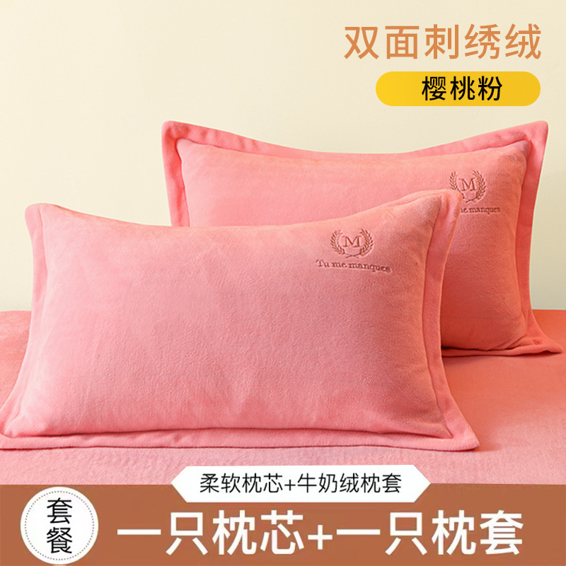 • [베개커버+베개심] 양면자수벨벳-체리핑크