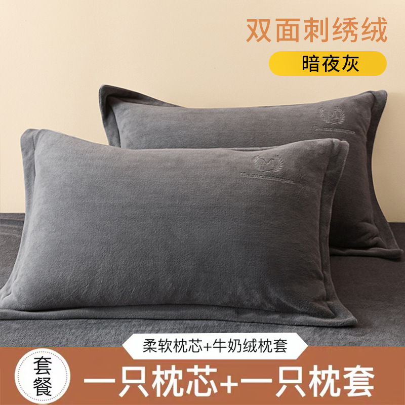 • [베개커버+베개심] 양면자수벨벳-다크나이트그레이