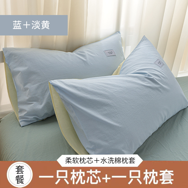 • [베개심 + 베갯잇] 파란색과 연한 노란색 순면 베갯잇