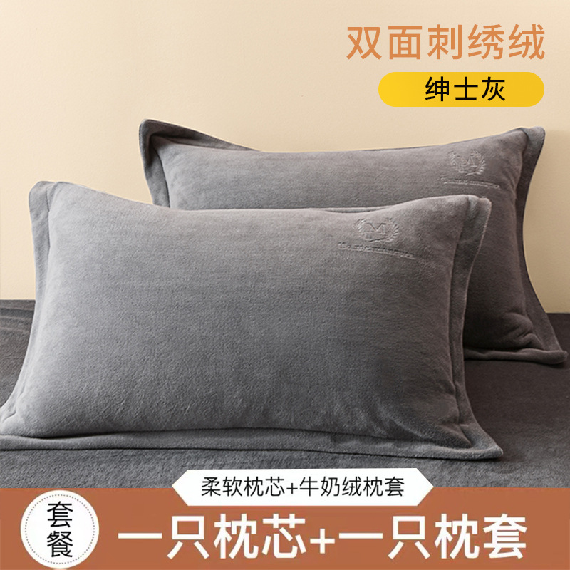 • [베개커버+베개심] 양면자수벨벳-젠틀맨그레이