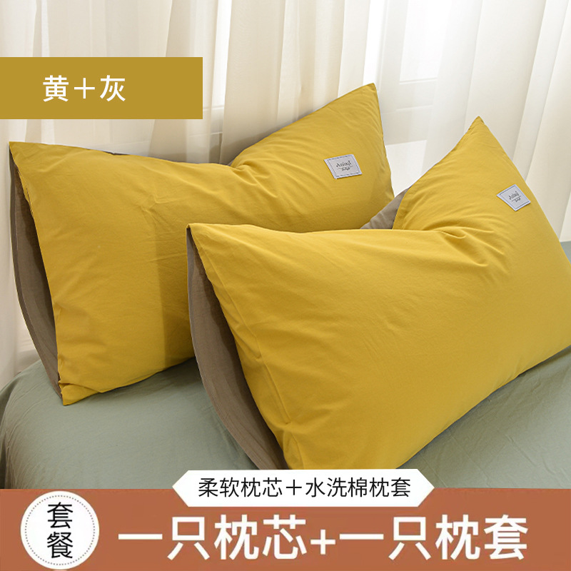 • [베개심+베갯잇] 옐로우 그레이 순면 베갯잇