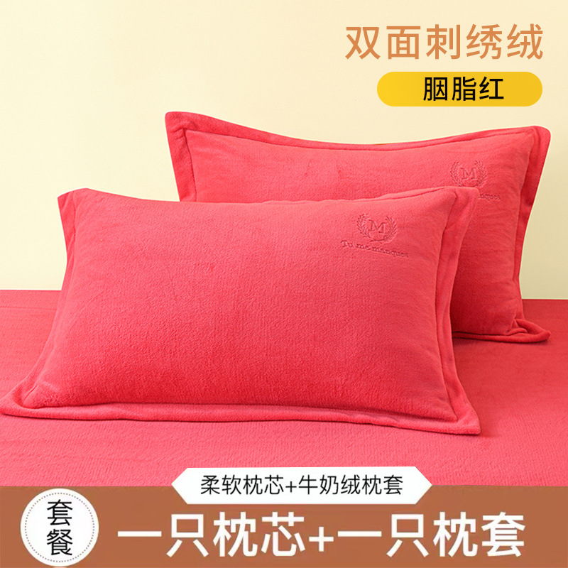 • [베갯잇+베개심] 양면자수 벨벳-카민