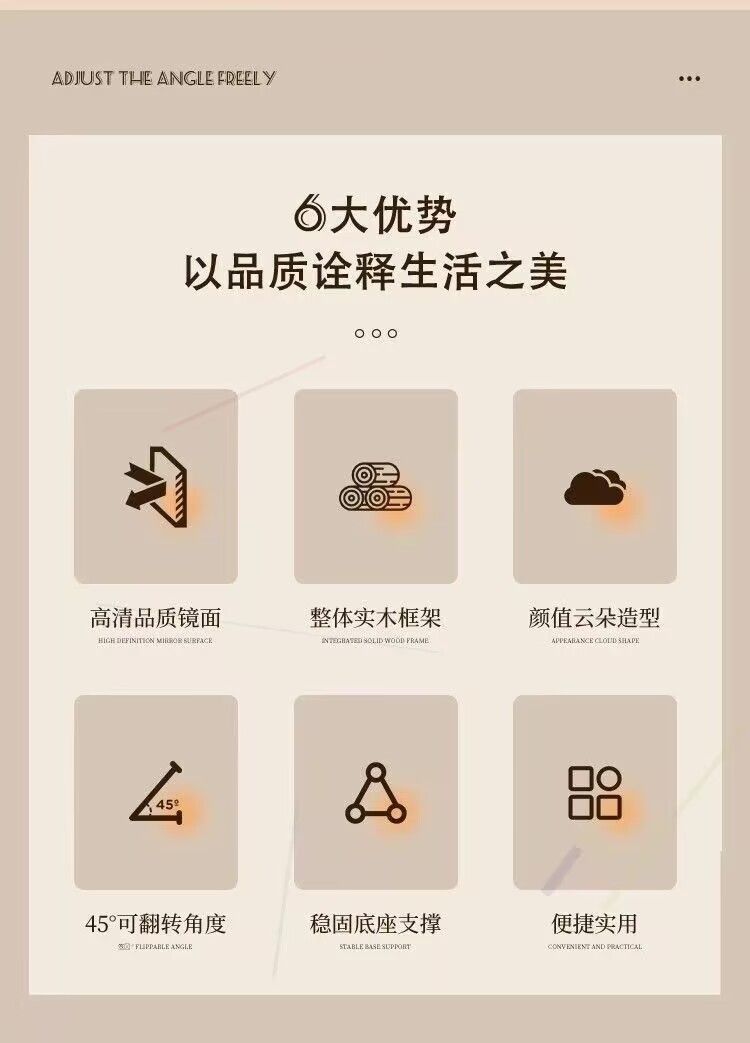 Yunduo 중고 화장 거울 단단한 나무 홈 데스크탑 침실 드레싱 테이블 거울 장식 복고풍 스타일 화장 거울스토어 가기