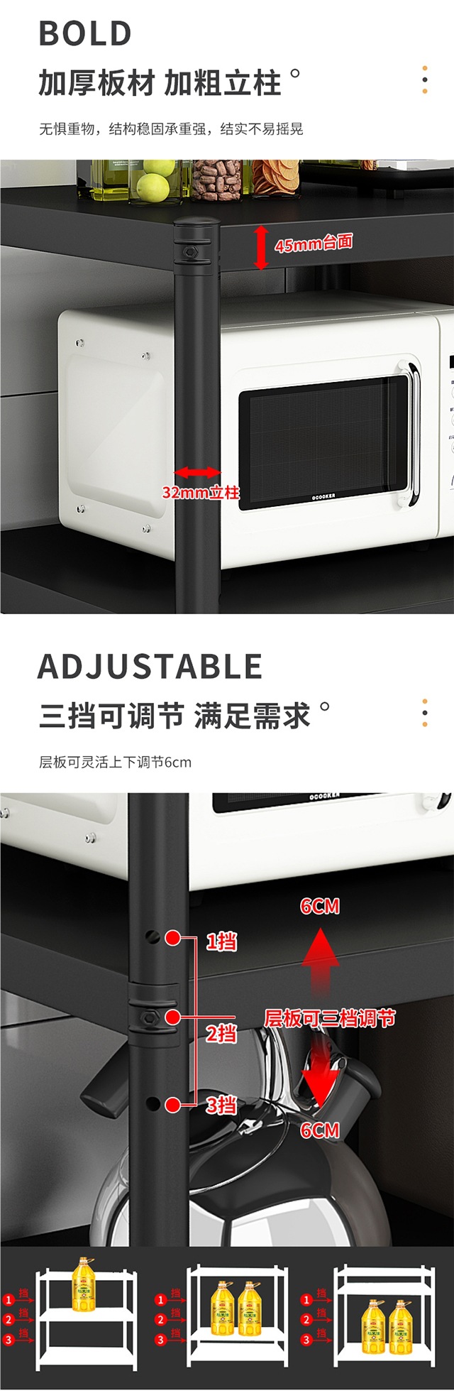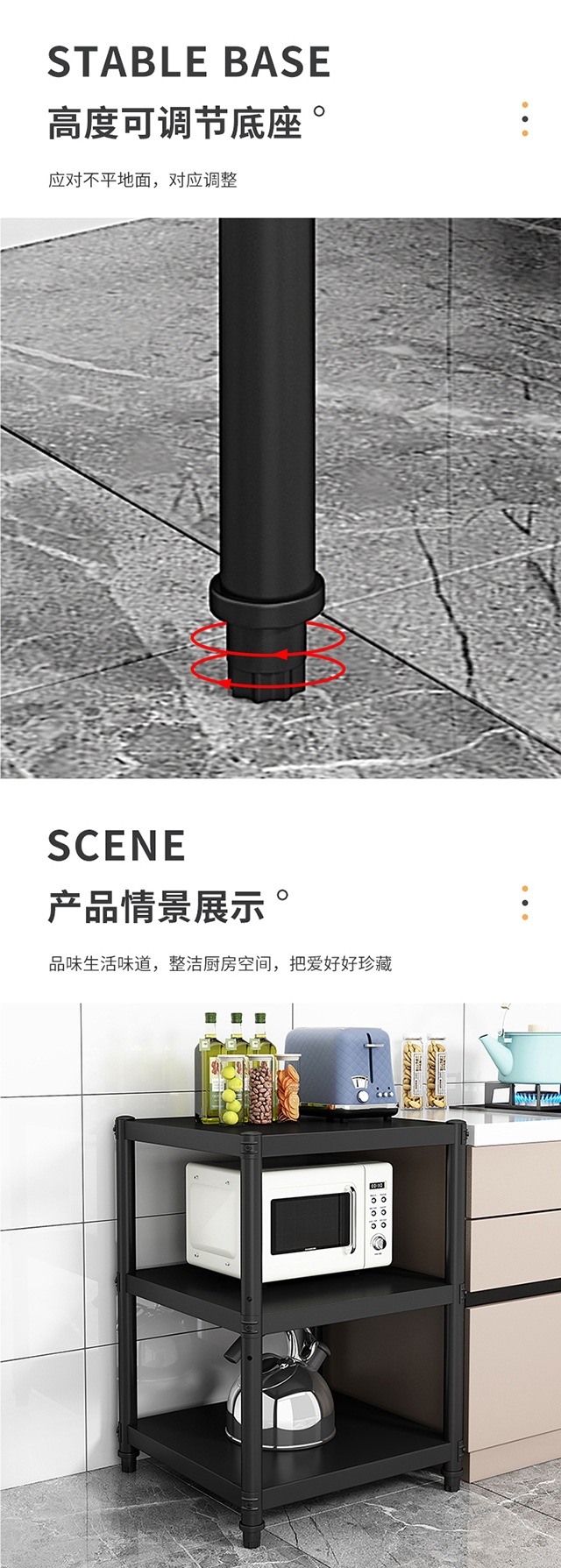 블랙 주방 선반 바닥에서 천장까지 3층 전자 레인지 다기능 수납 선반 냄비 수납 선반 가정용스토어 가기