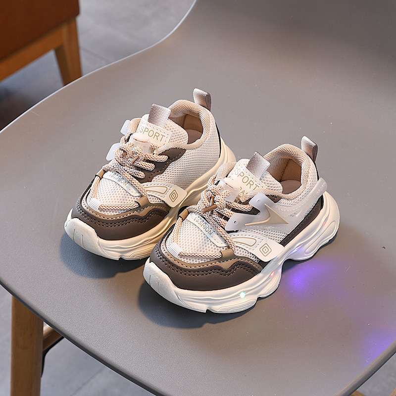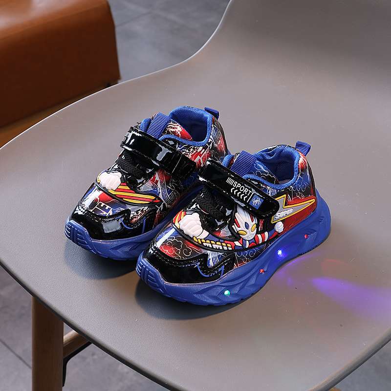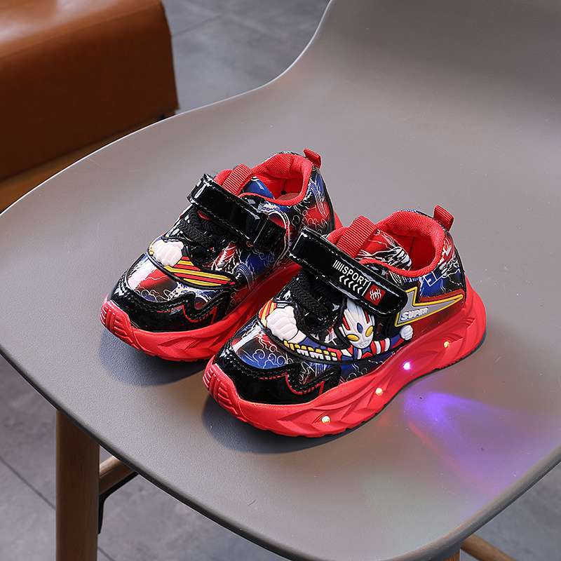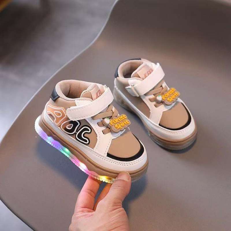 어린이 운동화, 가을 겨울 신상 가죽 소년 신발, 아기 부드러운 밑창 미끄럼 방지 유아 신발, 조명이 달린 멋진 신발스토어 가기