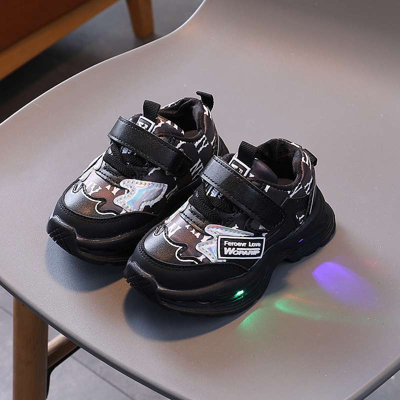 어린이 운동화, 가을 겨울 신상 가죽 소년 신발, 아기 부드러운 밑창 미끄럼 방지 유아 신발, 조명이 달린 멋진 신발